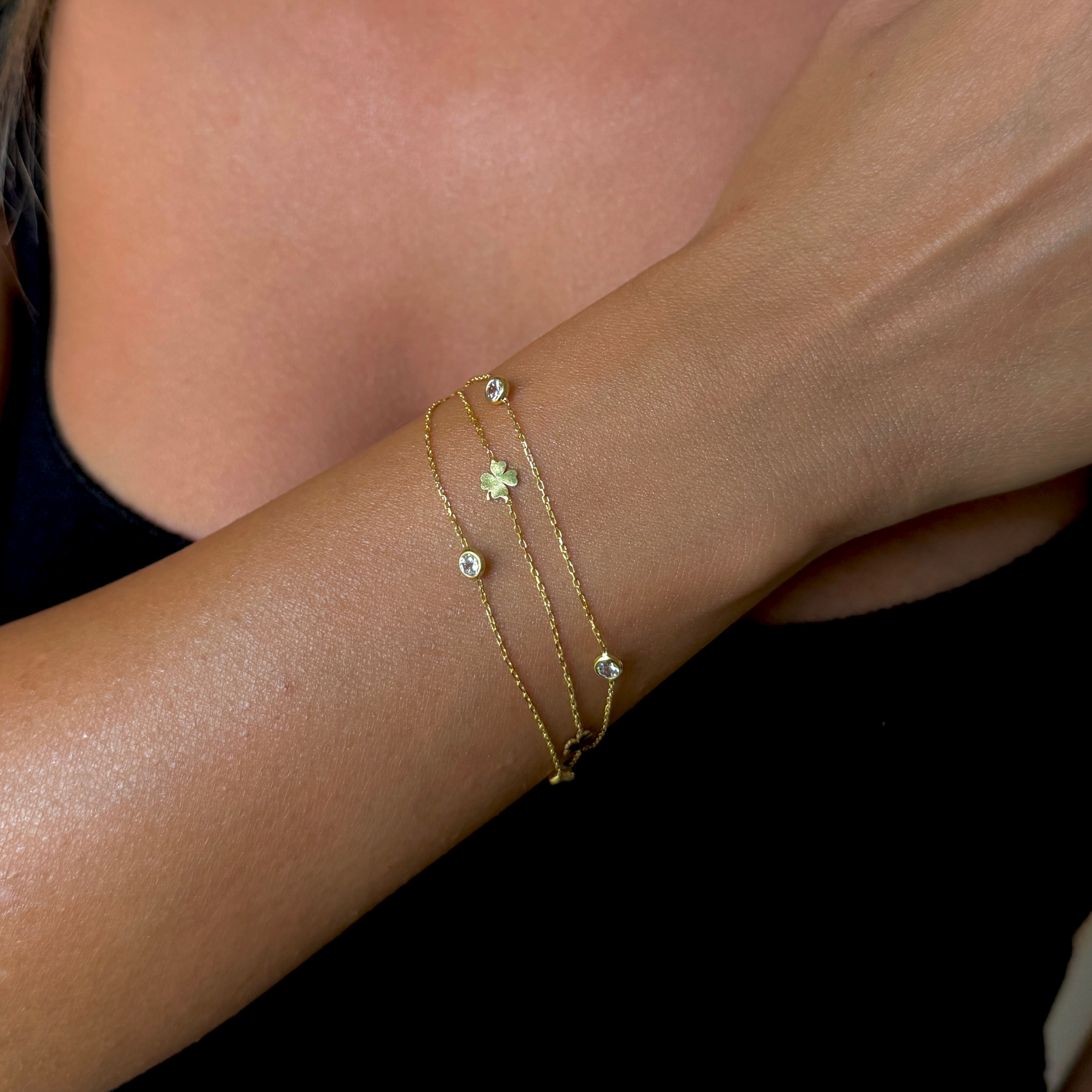 925 Gümüş | 3 Zincirli Taşlı Yonca Bileklik