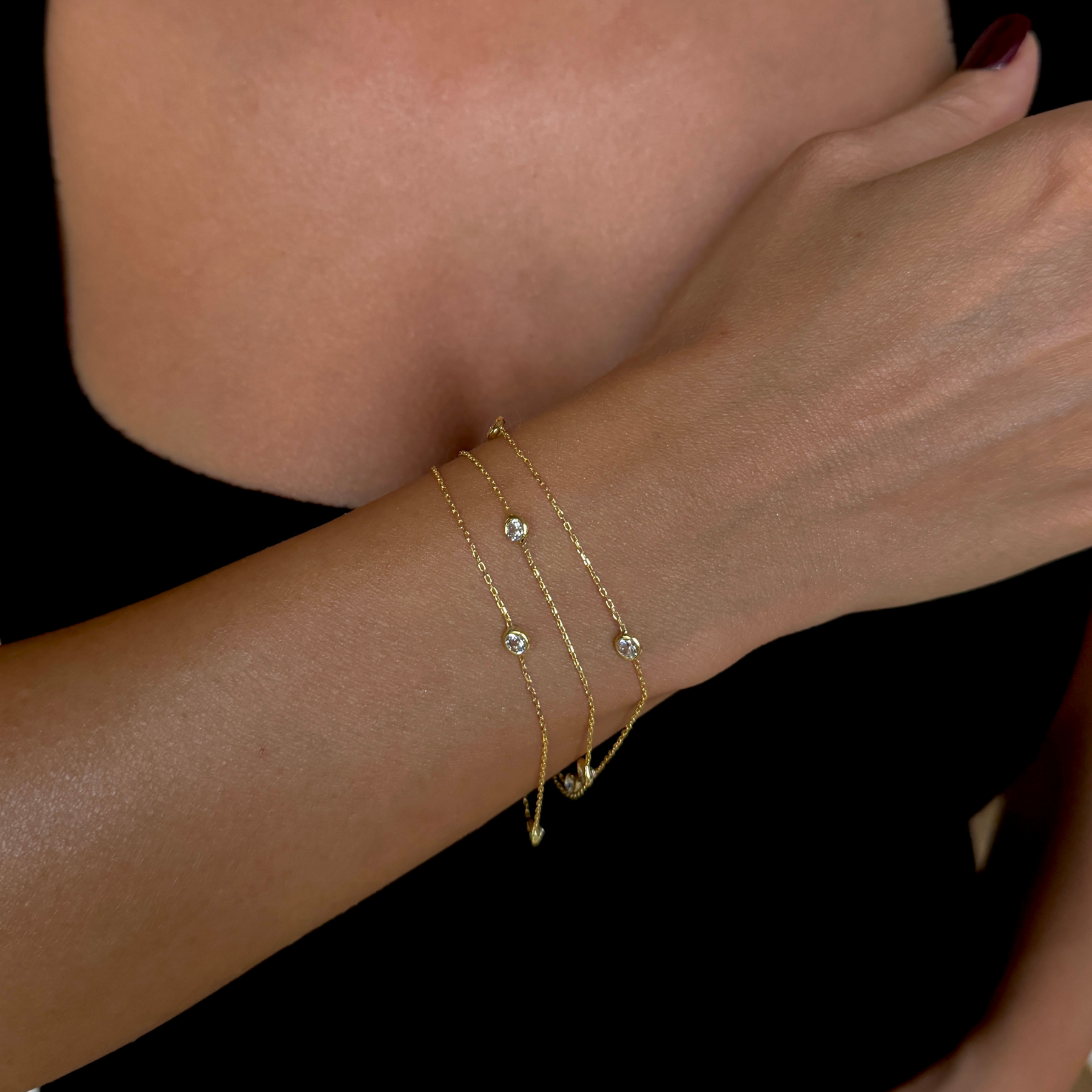 925 Gümüş | 3 Zincirli Yuvarlak Taşlı Bileklik