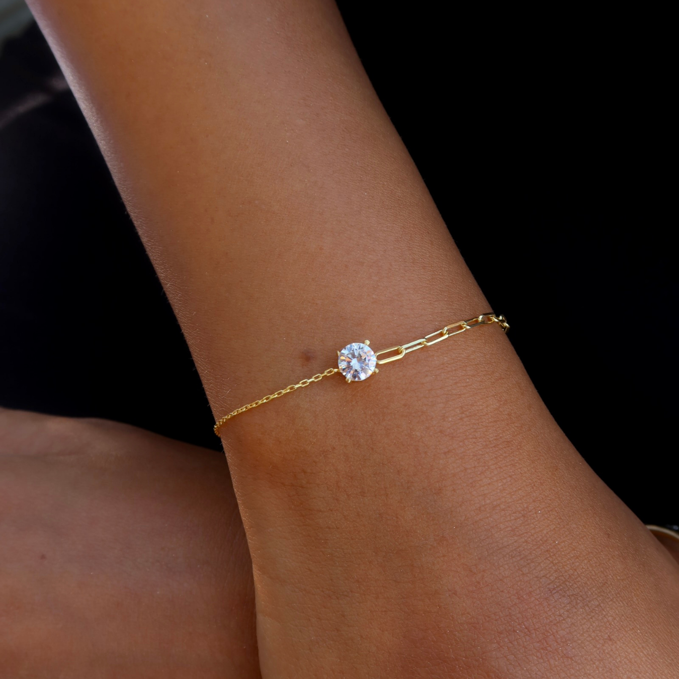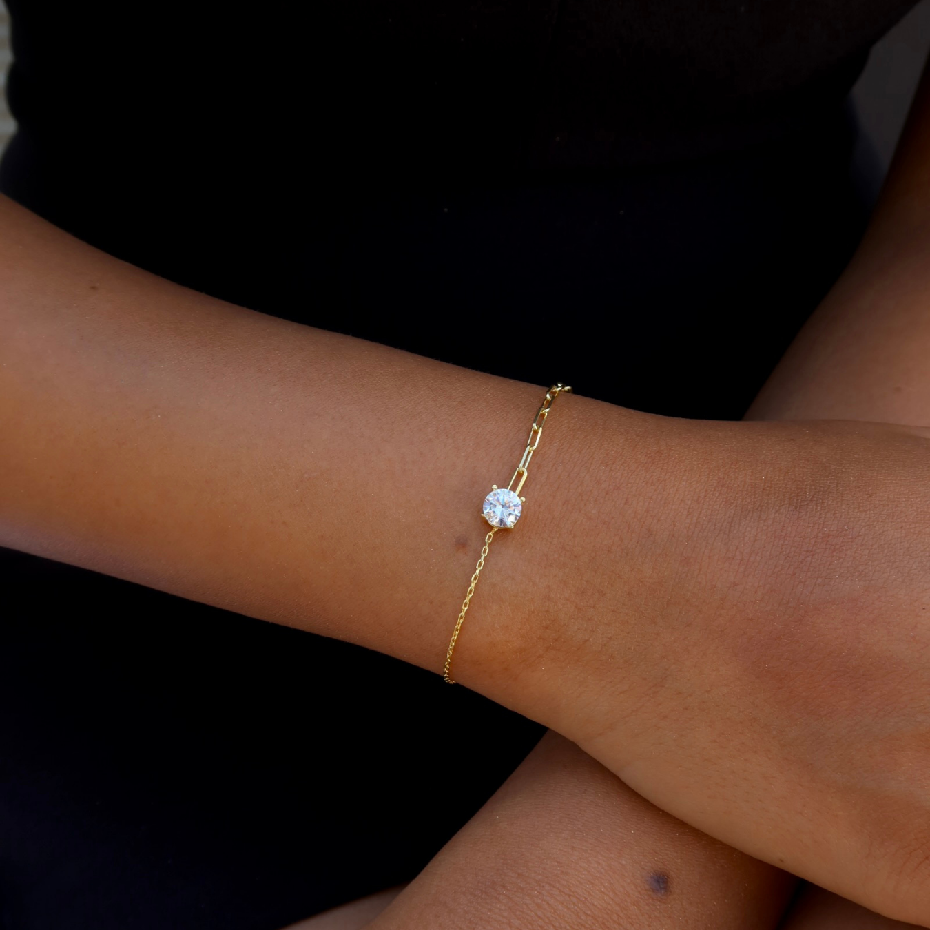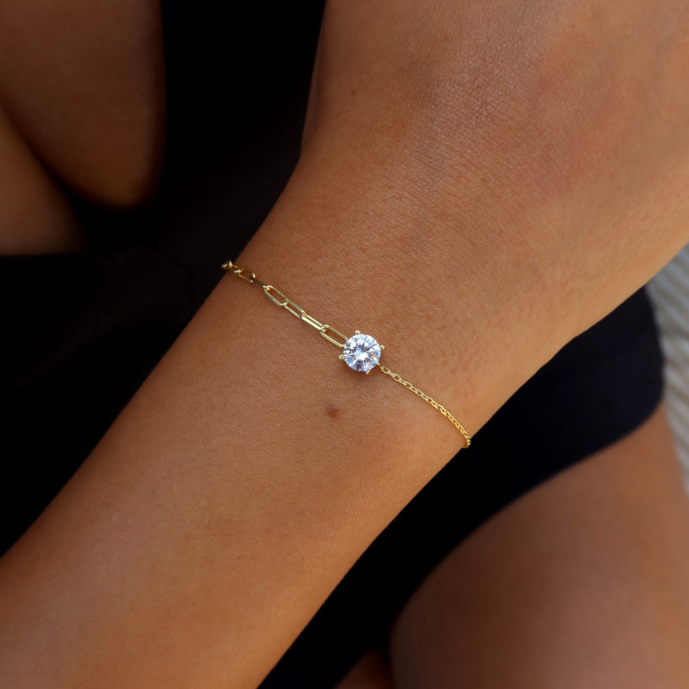 925 Gümüş | Ataç Zincirli Tektaş Bileklik