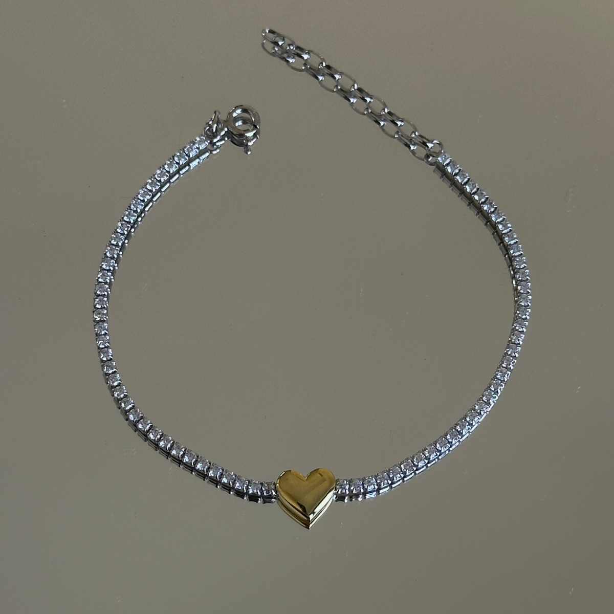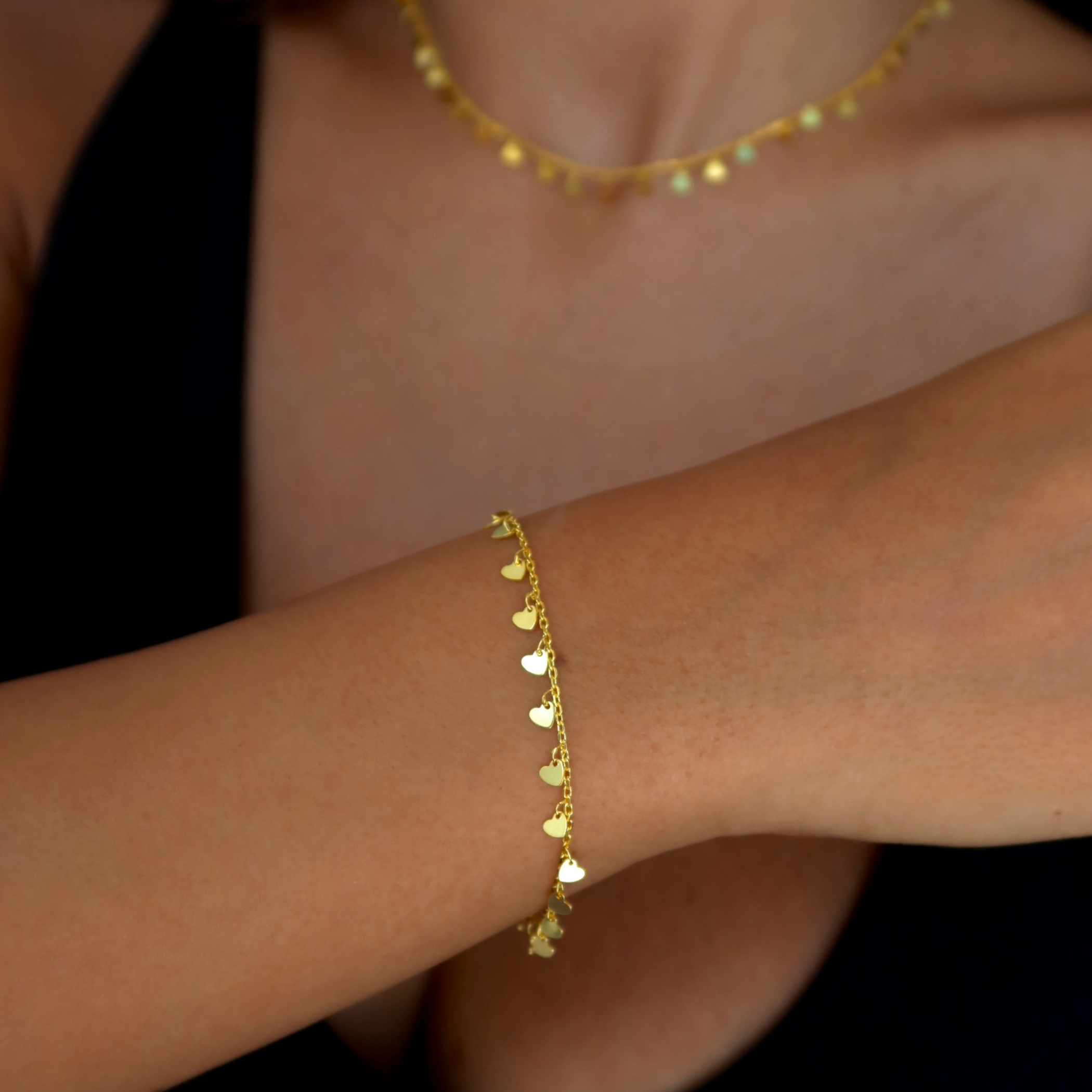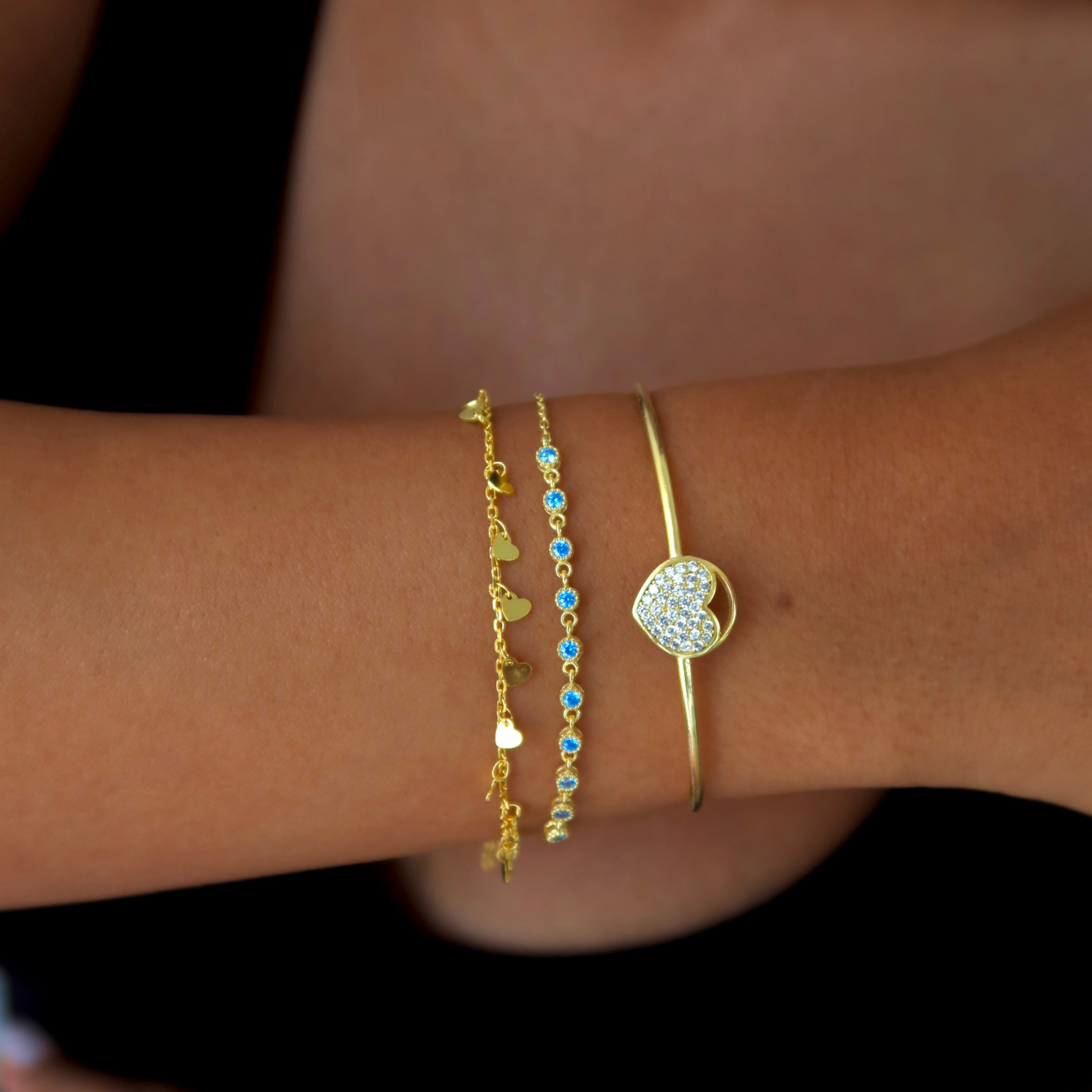 925 Gümüş | Kalpli Su Yolu Bileklik
