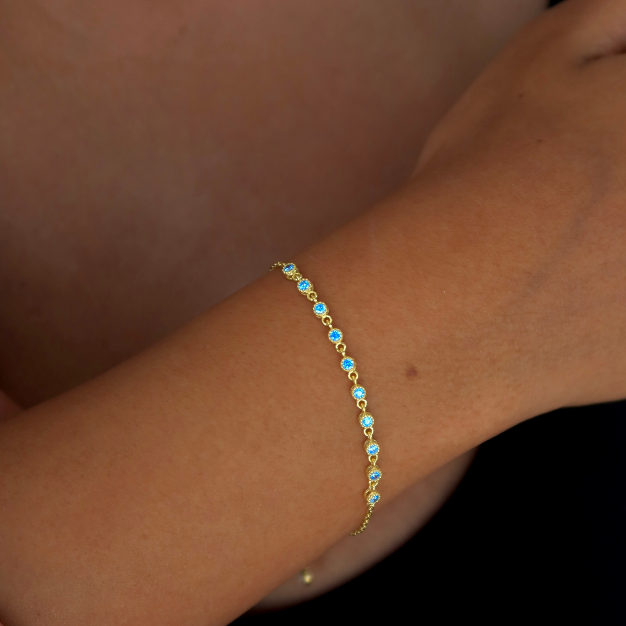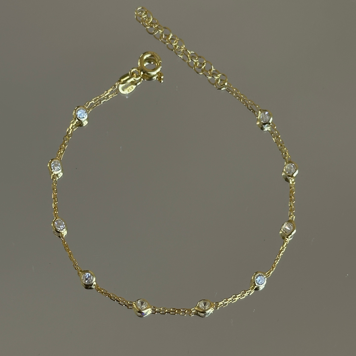 925 Gümüş | İnce Taşlı Zincir Bileklik