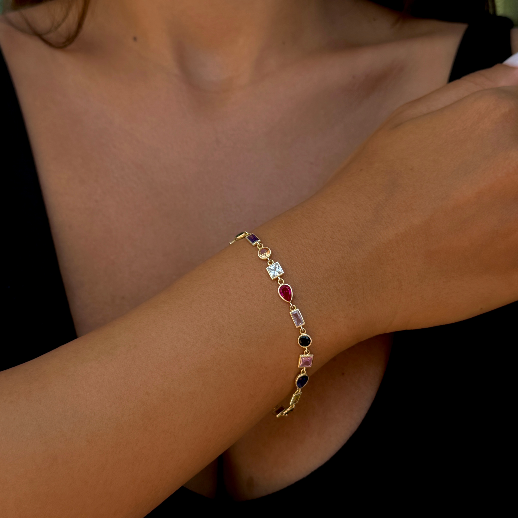 925 Gümüş | Renkli Karma Taşlı Bileklik