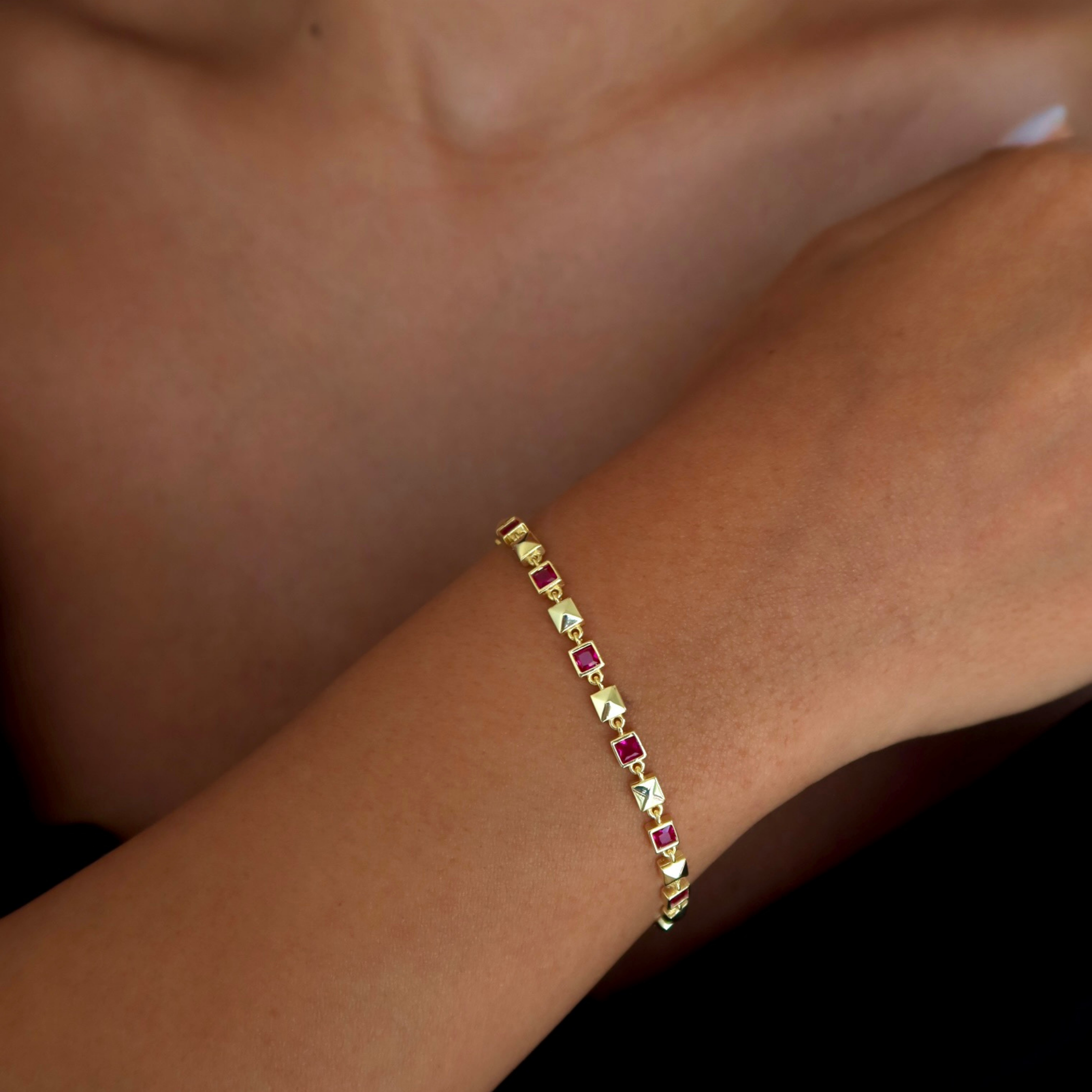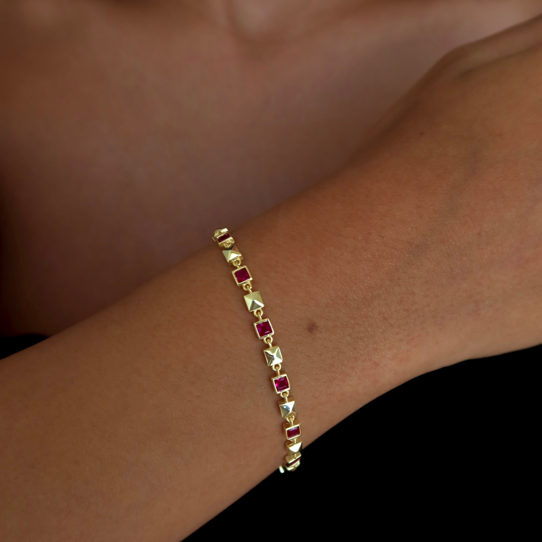 925 Gümüş | Yakut Renkli Kare Taşlı Bileklik