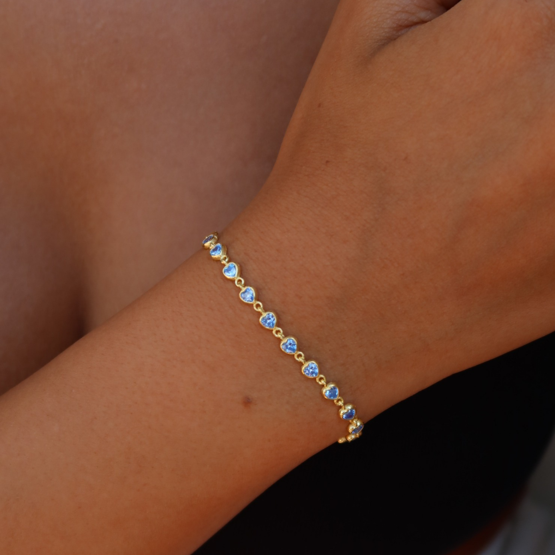 925 Gümüş | Akuamarin Taşlı Kalp Bileklik