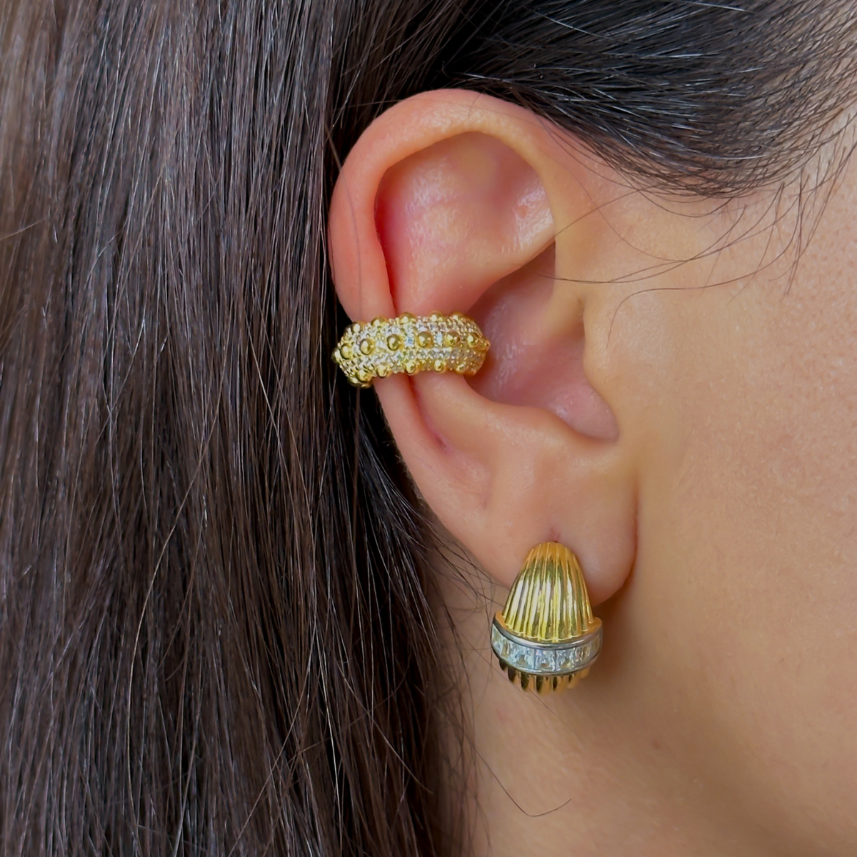 925 Gümüş | Çizgili Taşlı Bombeli Küpe