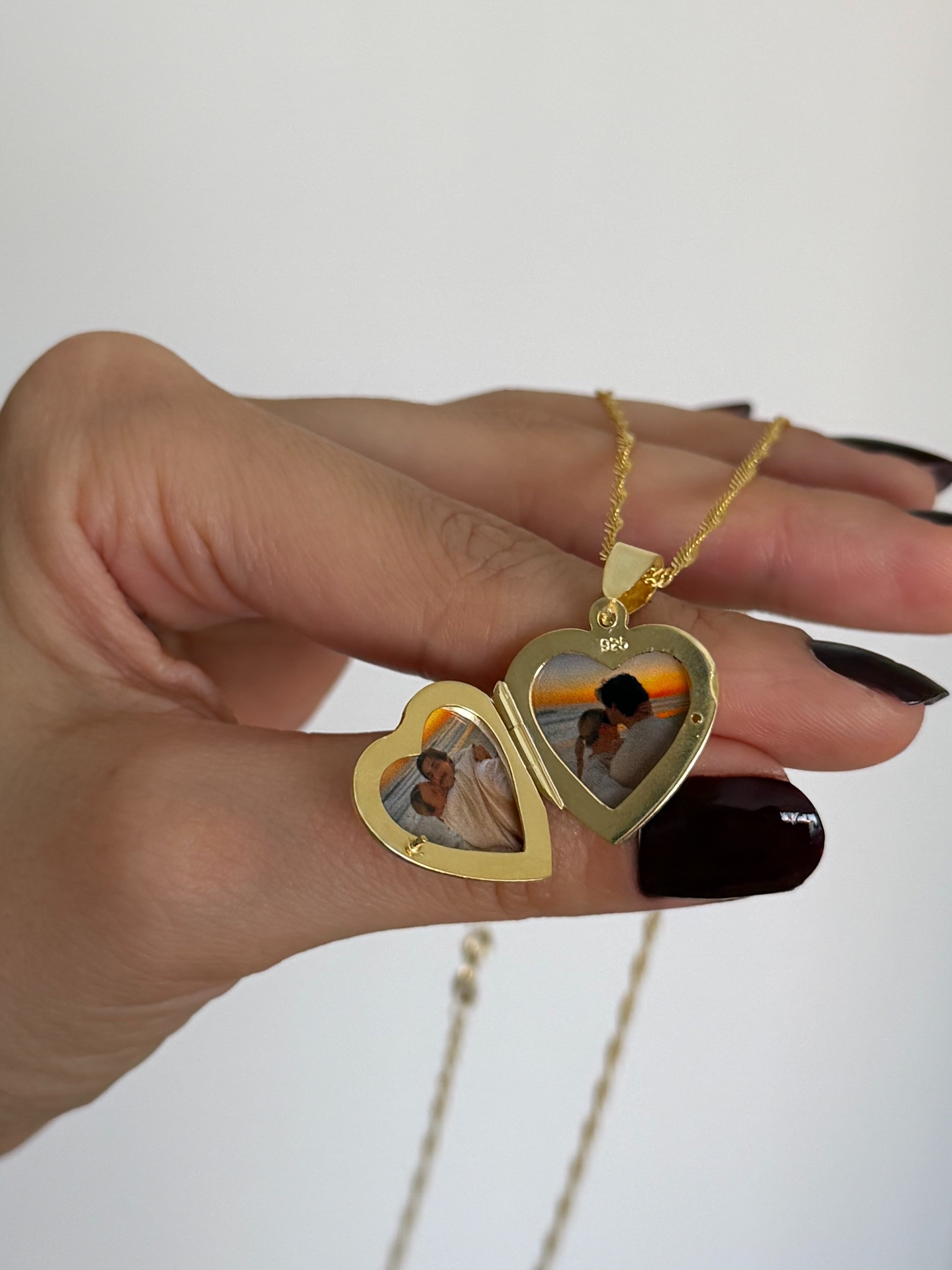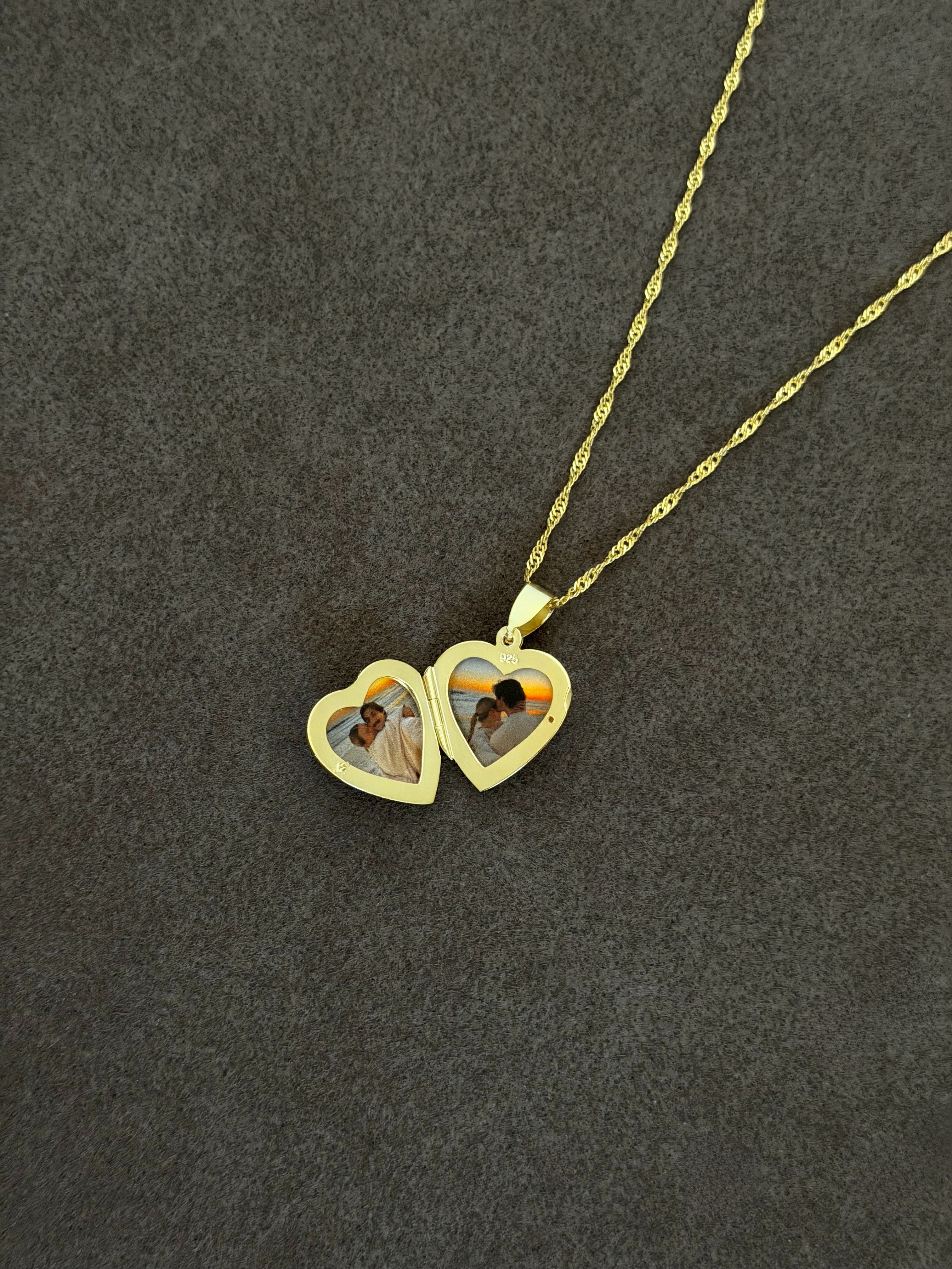 925 Gümüş Kişiye Özel Kalpli Kapaklı Fotoğraf Kolye