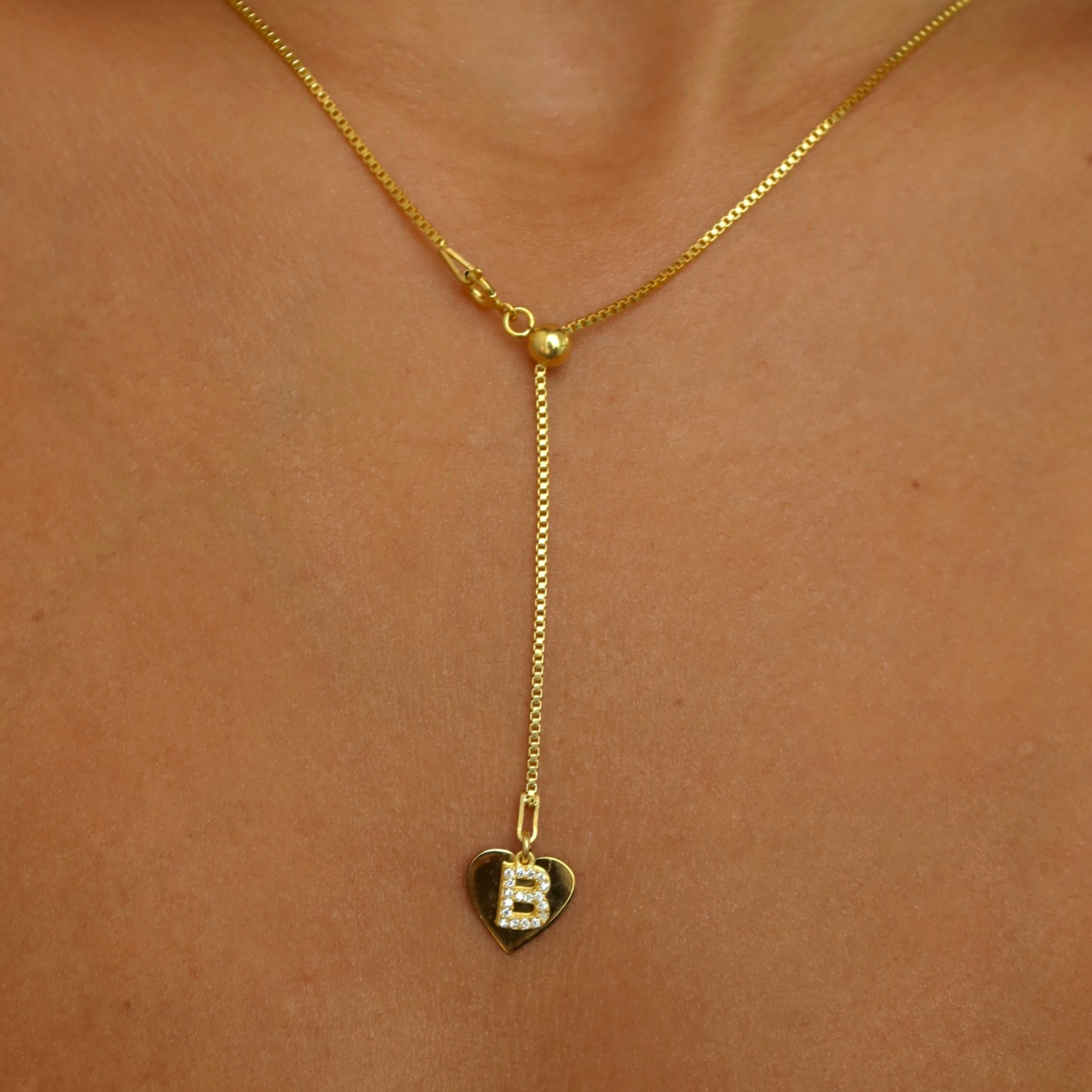 Ayarlanabilir Asansör Zincirli Kalpli Harf Kolye 925 ayar gümüştür. Gold seçeneğinde altın kaplama yapılmaktadır.