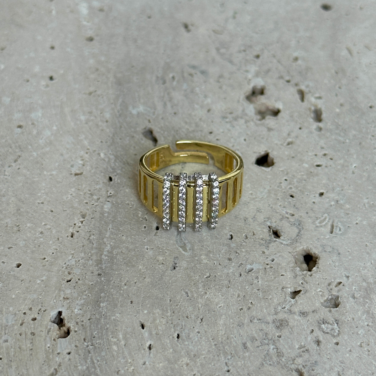 Nova Yüzük, 925 ayar gümüştür. Gold seçeneğinde altın kaplama yapılmaktadır. Ayarlanabilir formu sayesinde farklı parmak ölçülerine kolayca uyum sağlar. Kapalıçarşı’daki atölyemizde ustalıkla üretilmiştir.
