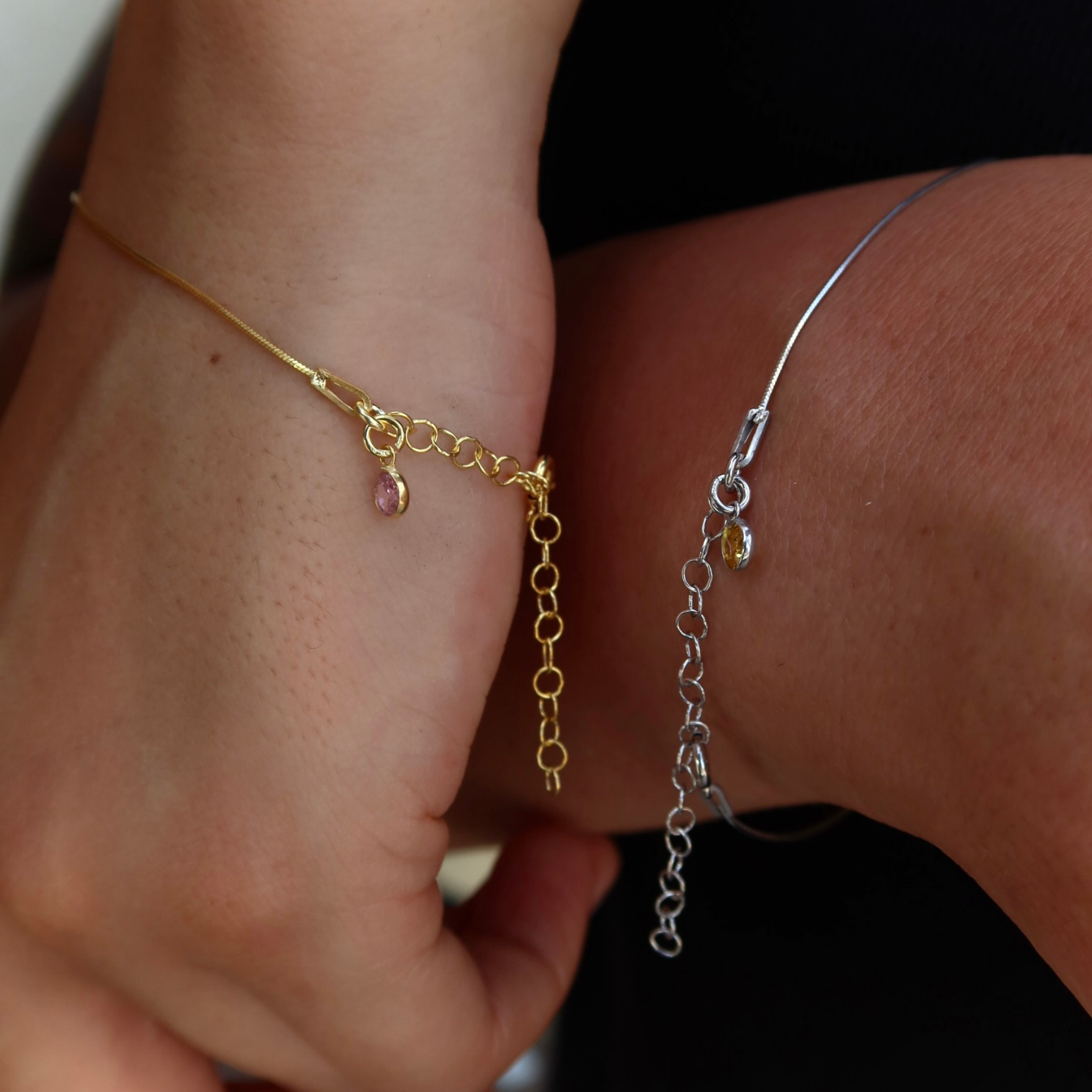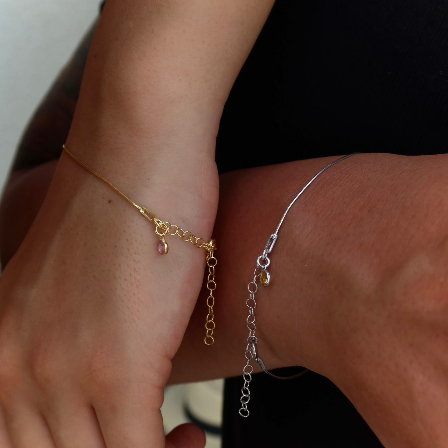 925 Gümüş | Doğum Ayı Taşlı İnce İtalyan Bileklik(Tekli)