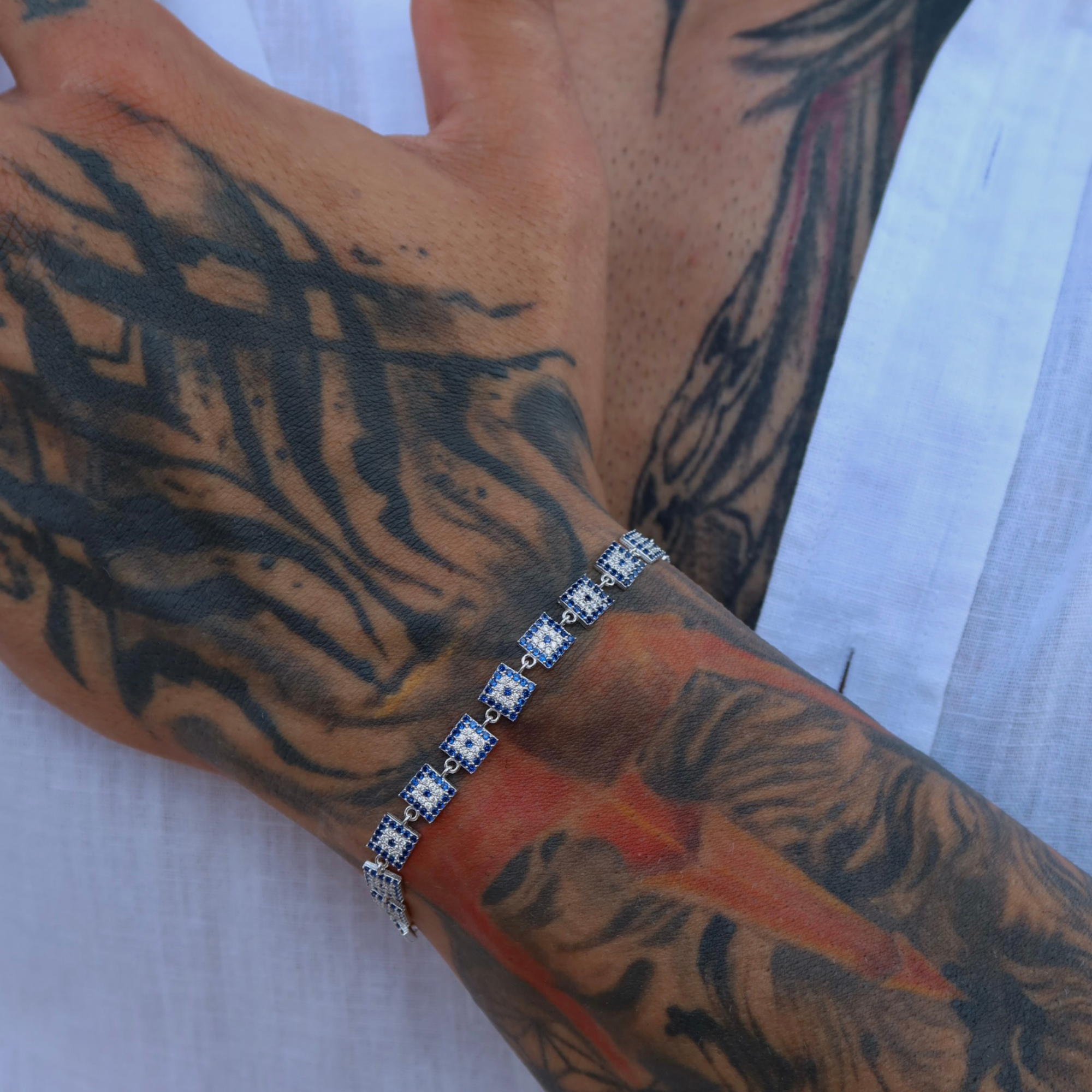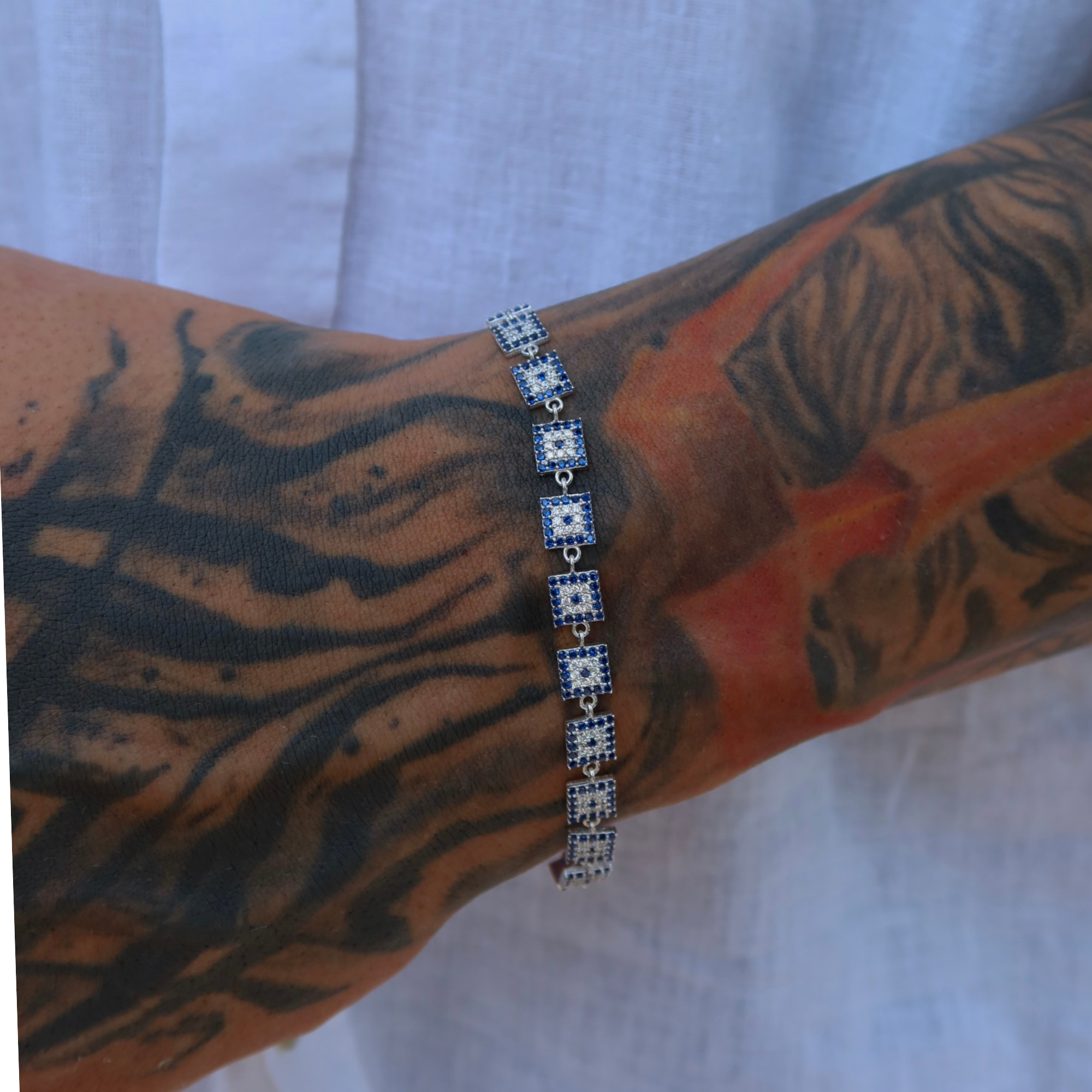 925 Gümüş | Sıralı Kare Nazar Bileklik