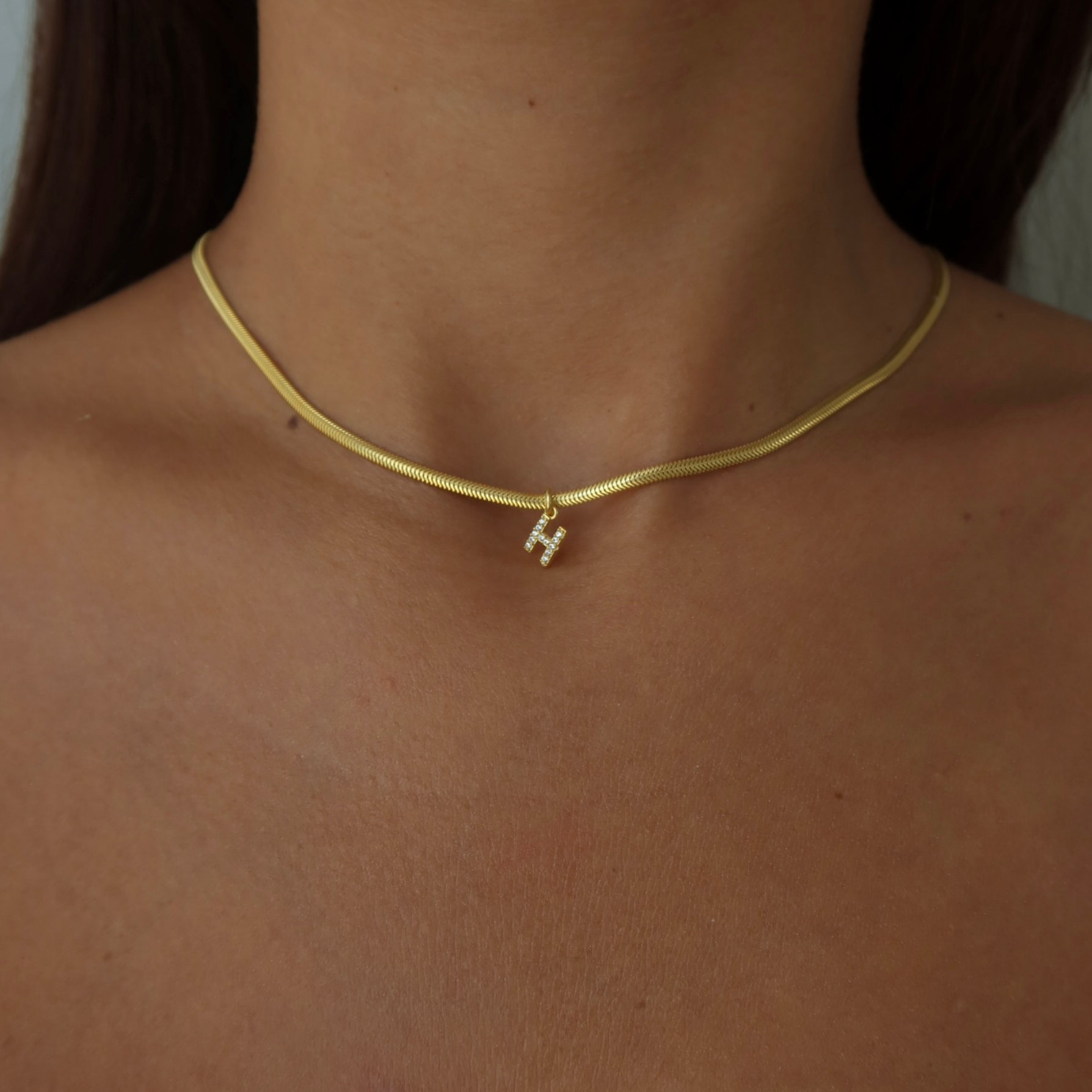 925 Gümüş | Harf Charm'lı Yılan Zincir Kolye