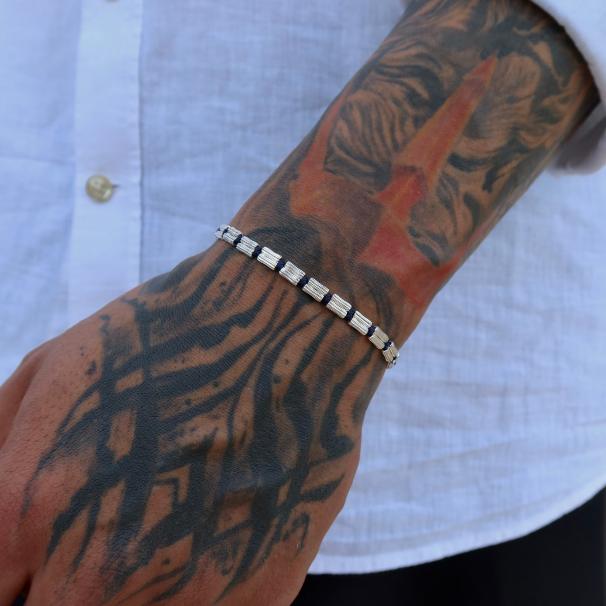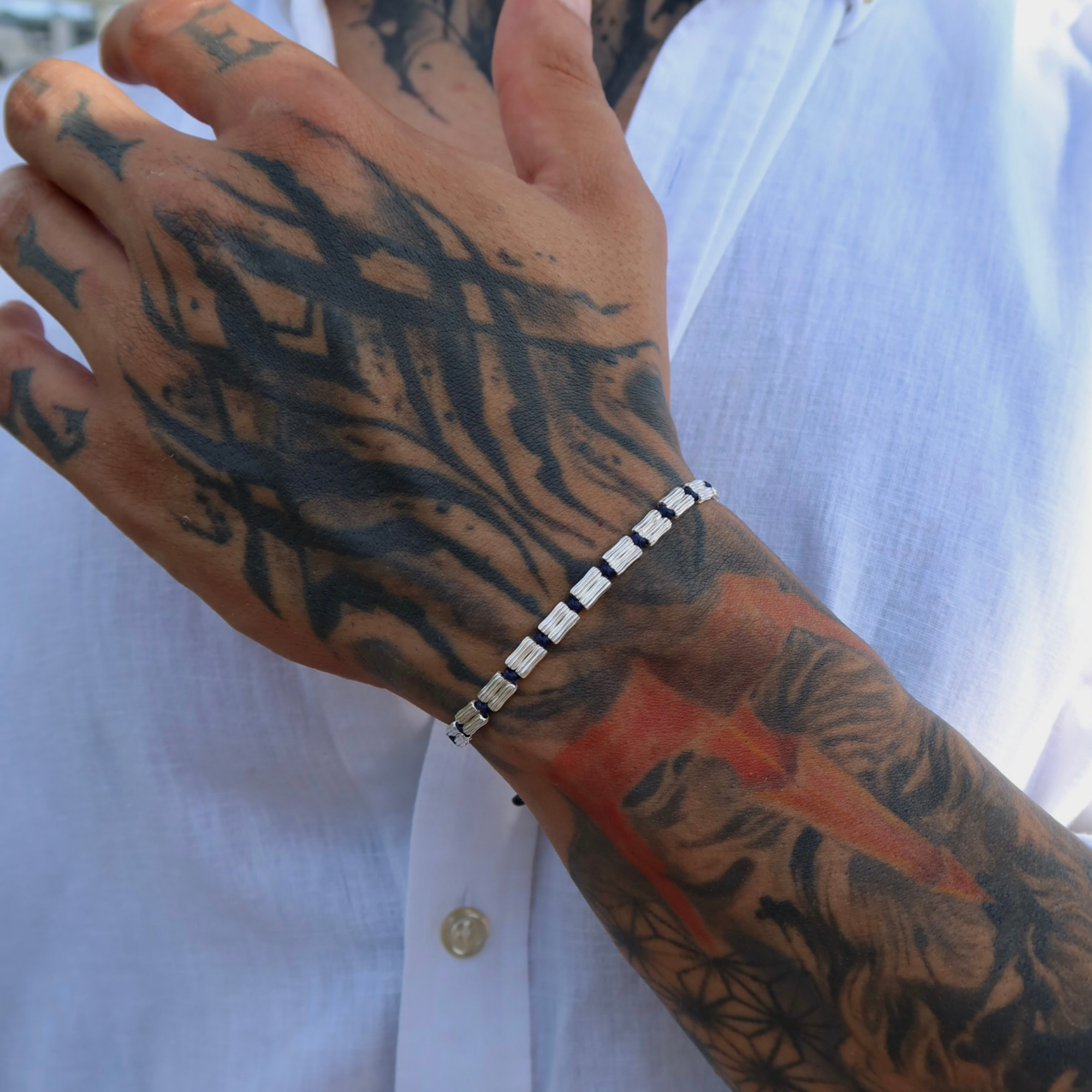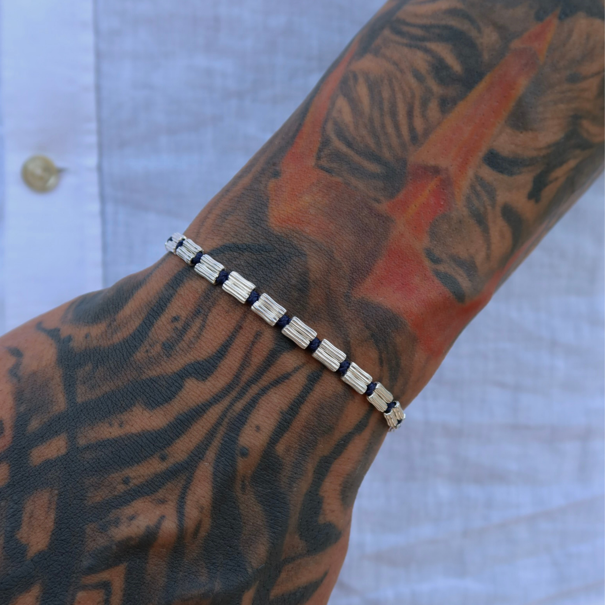 925 Gümüş | Lacivert İpli Dizi Bileklik