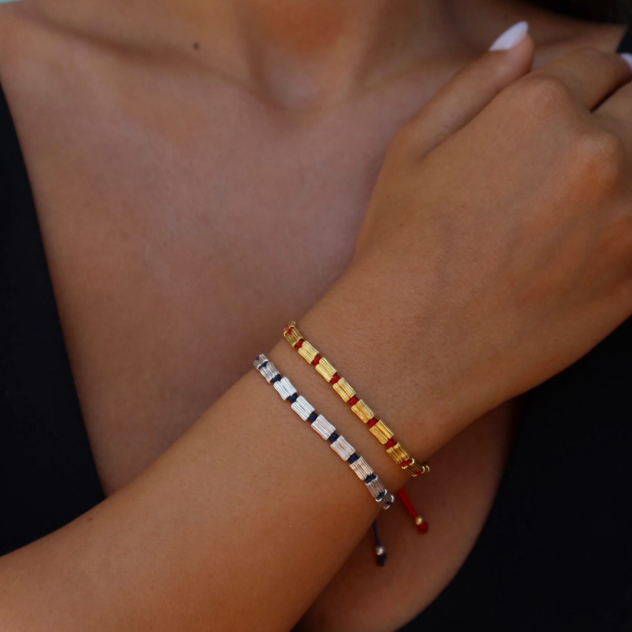 İpli Dizi Bileklik, 925 ayar gümüştür. Gold seçeneğinde altın kaplama yapılmaktadır. Ayarlanabilir formdadır.