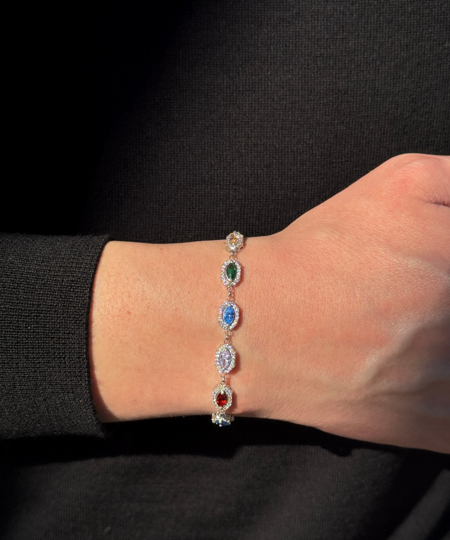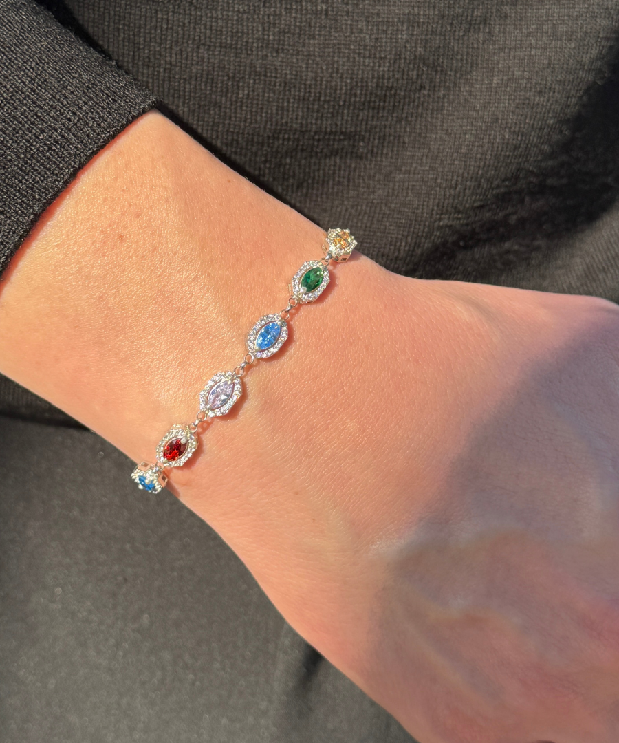 925 Gümüş | Colorfol Markiz Taşlı Bileklik