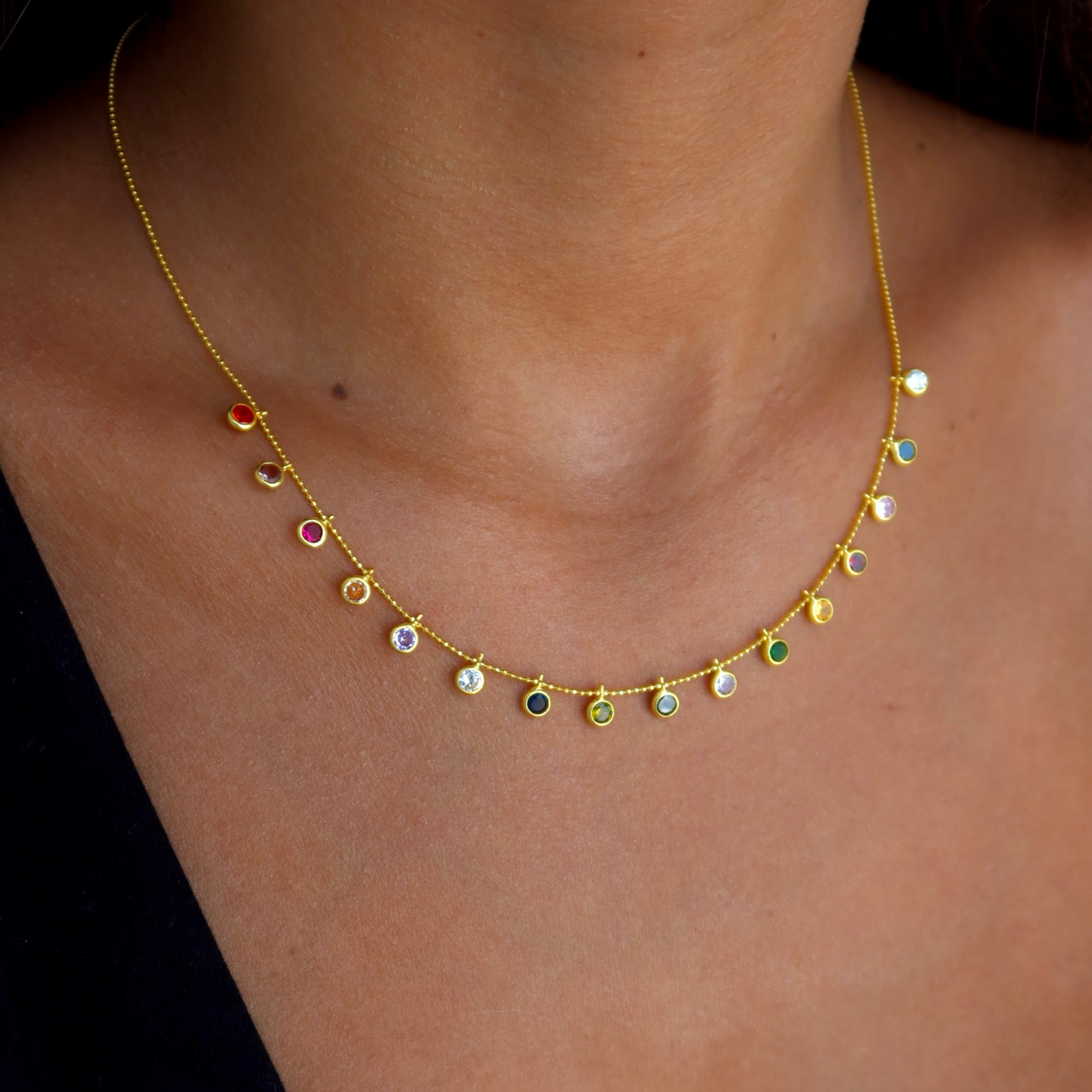 Çok Renkli Taş Charm Kolye, 925 ayar gümüştür. Uzunluk 40 cm'dir +5 cm uzatma zinciri vardır.