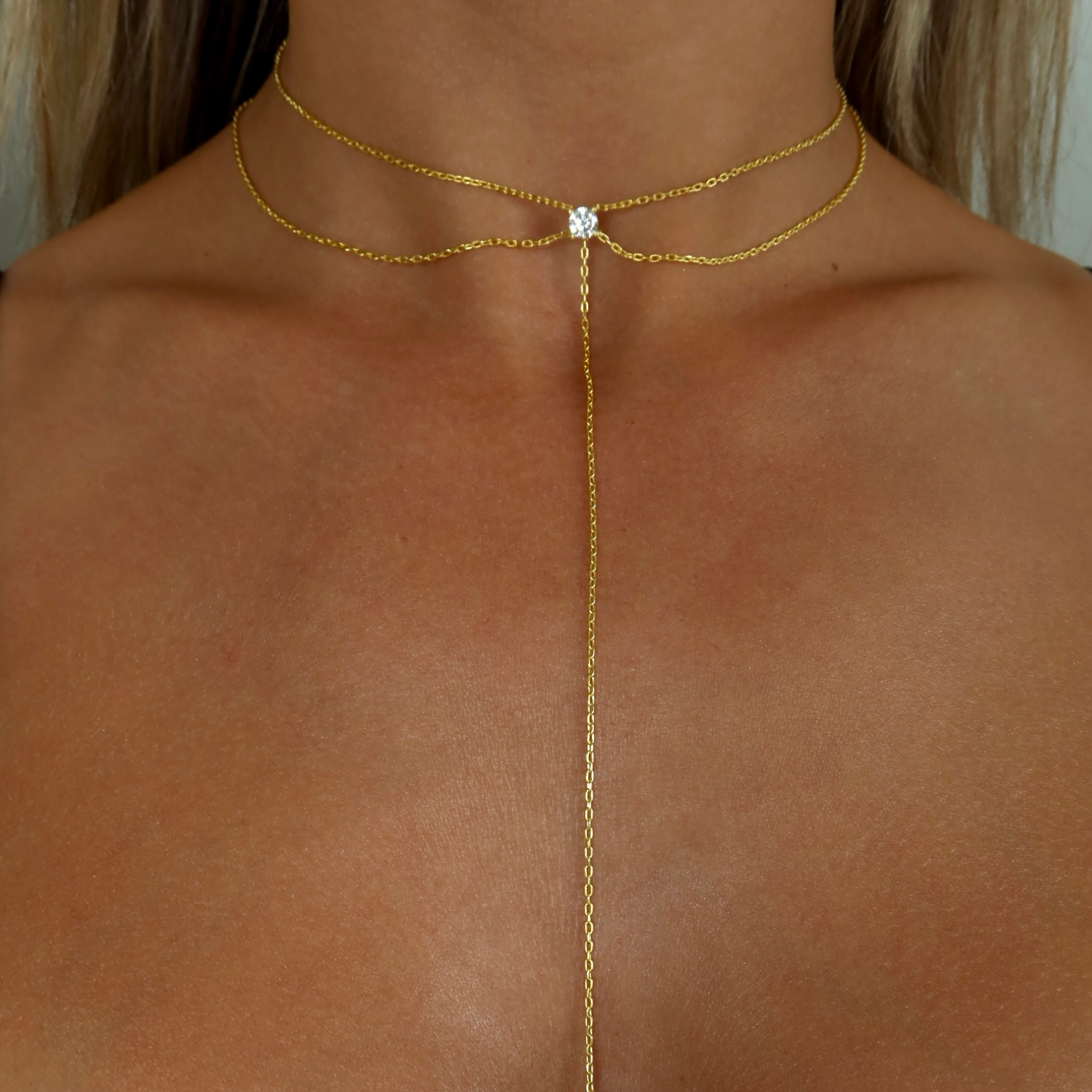 Minimal Tek Taşlı Zincir Kolye, 925 ayar gümüştür.
