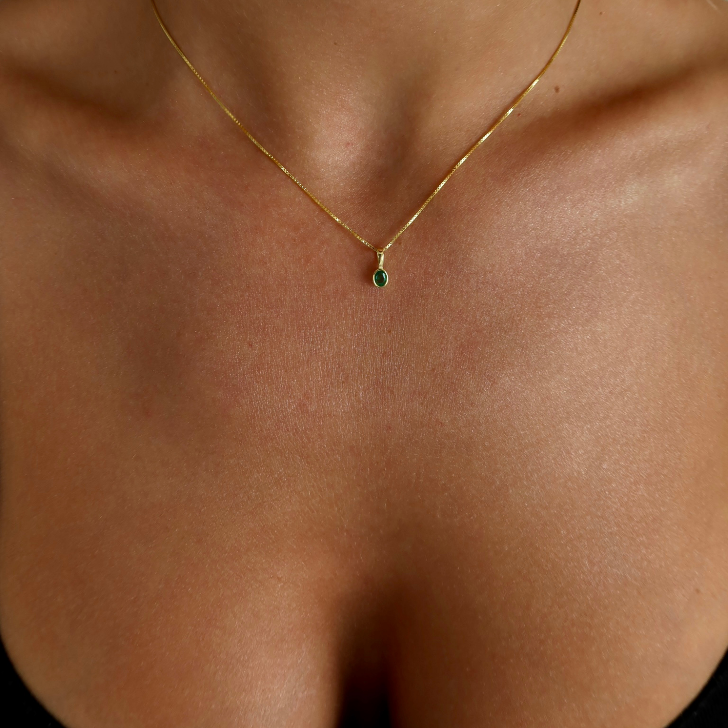Minimal Yeşil Taşlı Kolye, 925 ayar gümüştür. Gold seçeneğinde altın kaplama yapılmaktadır. Zincir uzunluğu 40 cm + 5 cm uzatma zincirlidir.