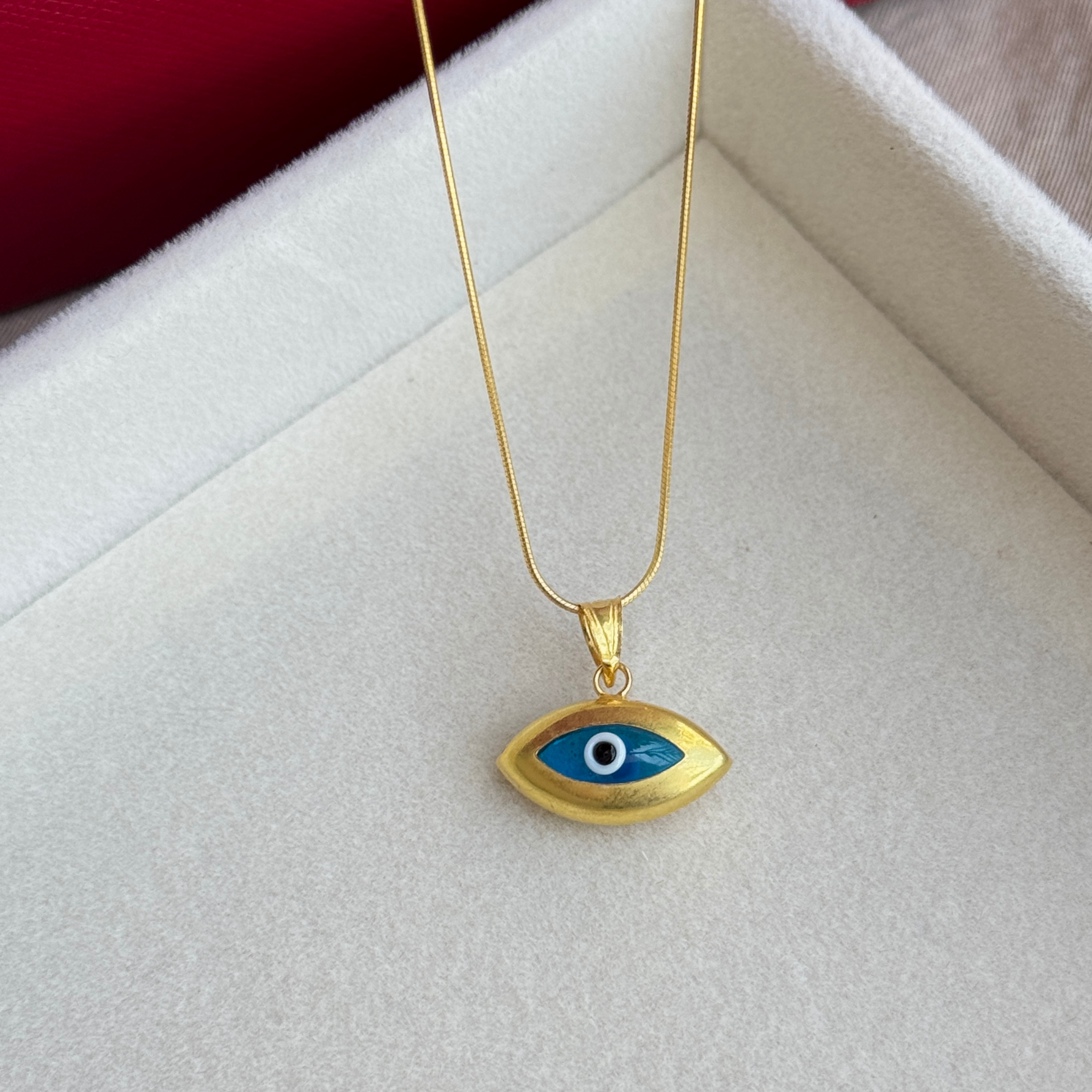 Nazar Göz Kolye, 925 ayar gümüştür. Gold seçeneğinde altın kaplama yapılmaktadır. Zincir uzunluğu 40 cm + 5 cm uzatma zincirlidir.