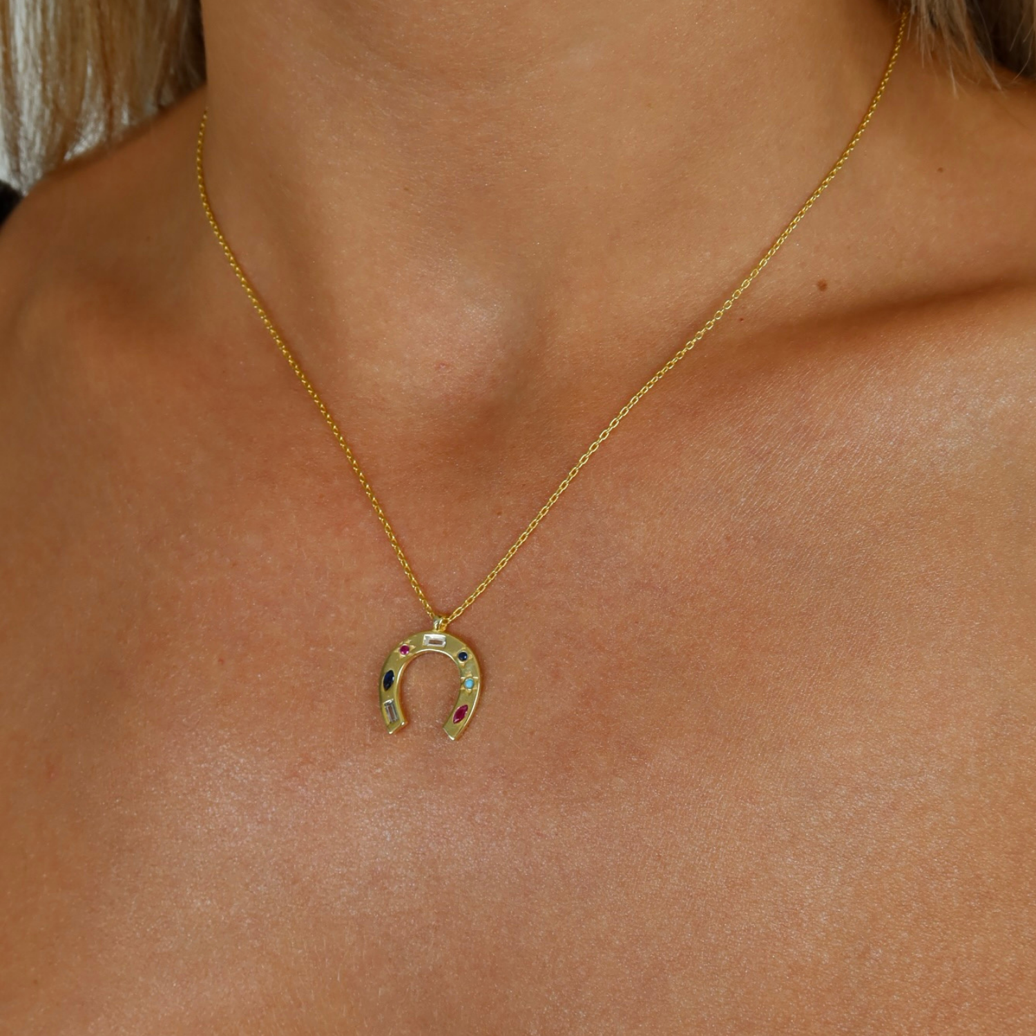 Renkli Taşlı At Nalı Şans Kolye, 925 ayar gümüştür. Gold seçeneğinde altın kaplama yapılmaktadır. Zincir uzunluğu 40 cm + 5 cm uzatma zincirlidir.