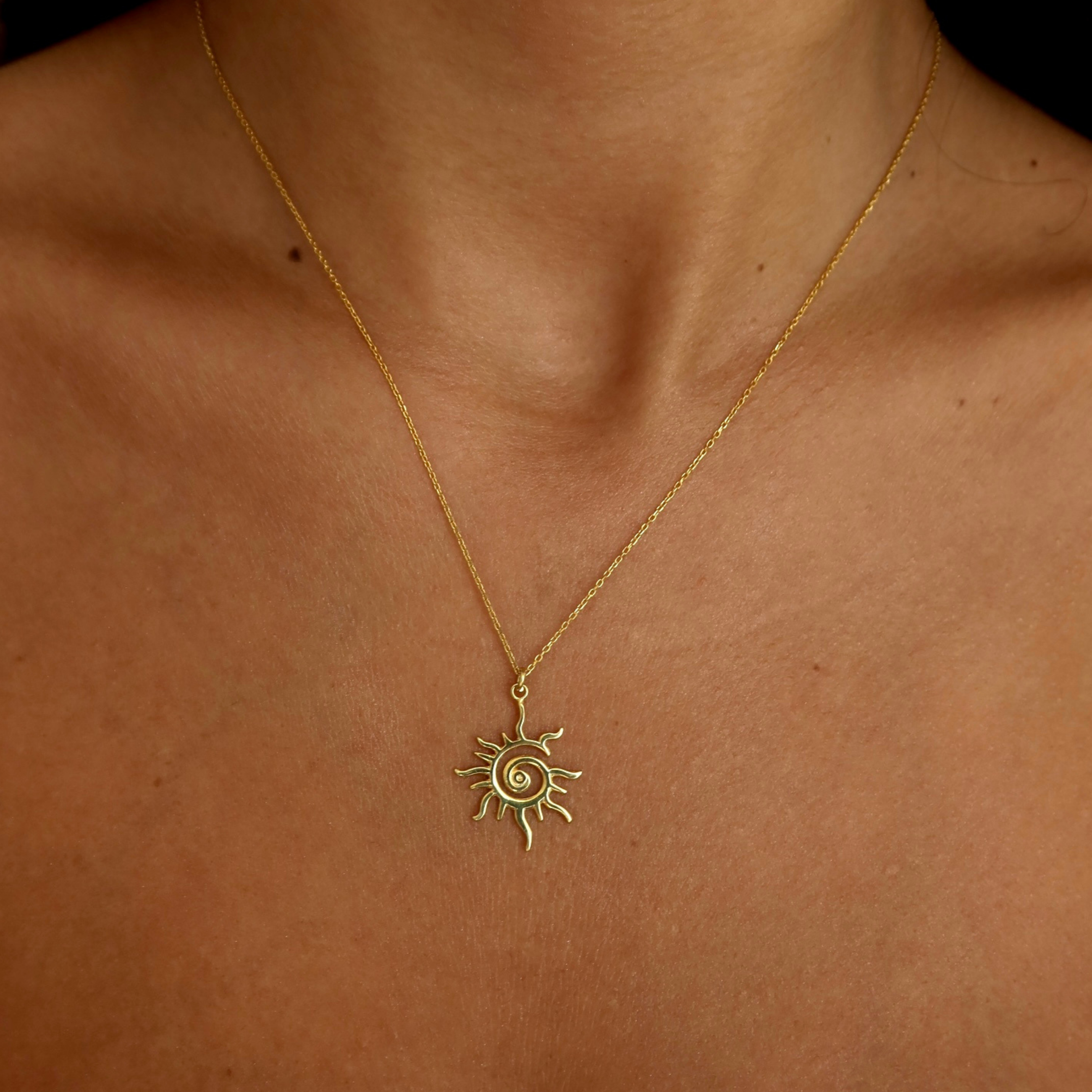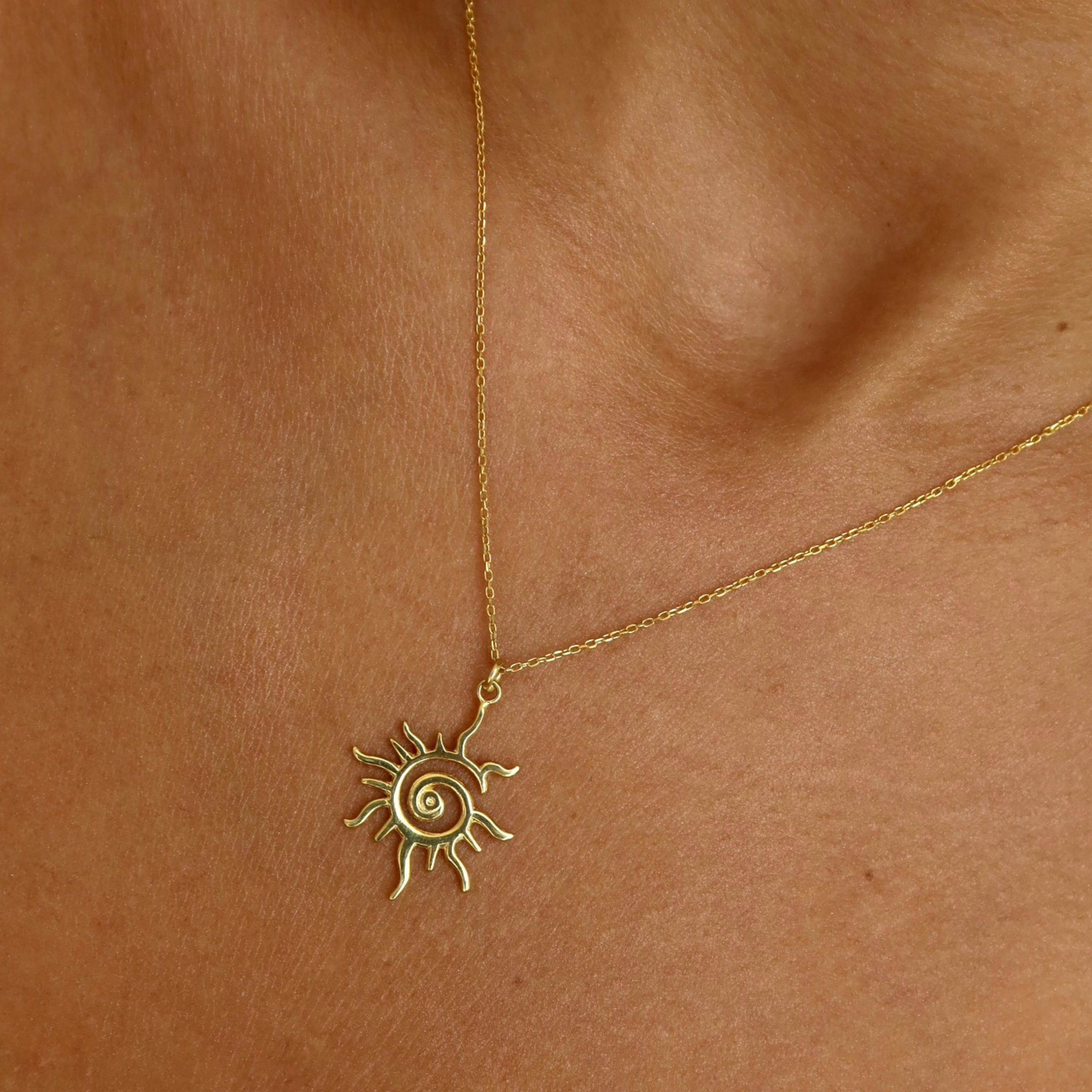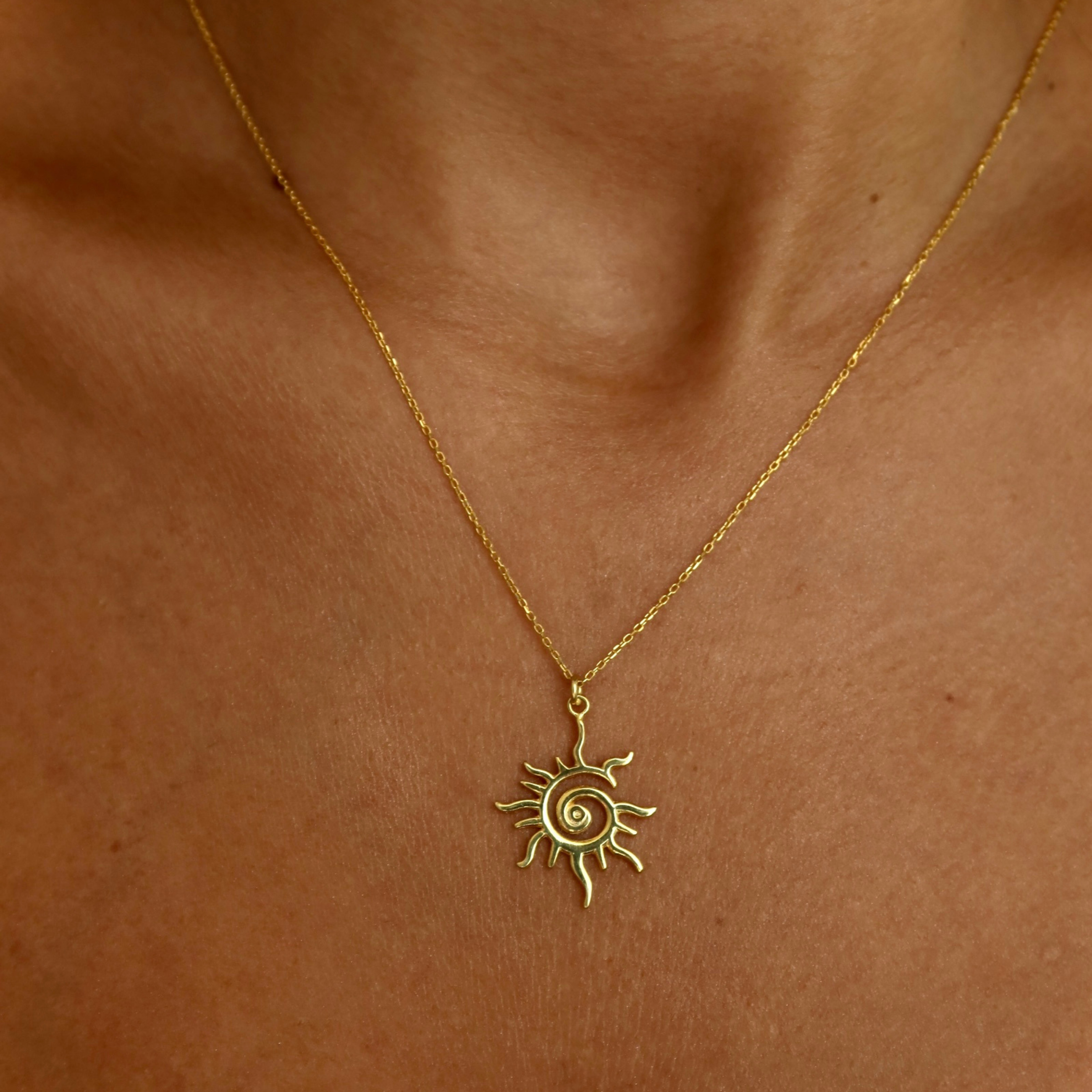 Spiral Güneş Kolye, 925 ayar gümüştür. Gold seçeneğinde altın kaplama yapılmaktadır. Zincir uzunluğu 40 cm + 5 cm uzatma zincirlidir.