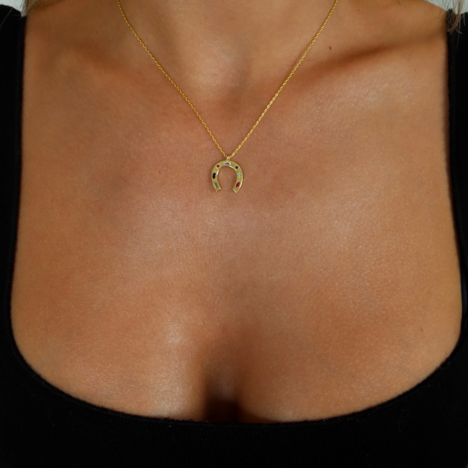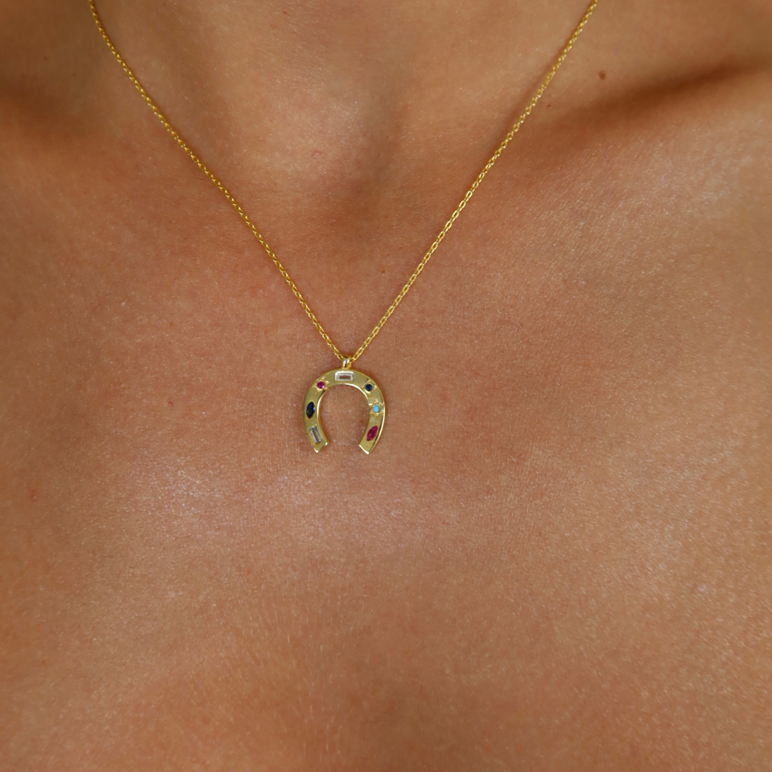 925 Gümüş | Renkli Taşlı At Nalı Şans Kolye