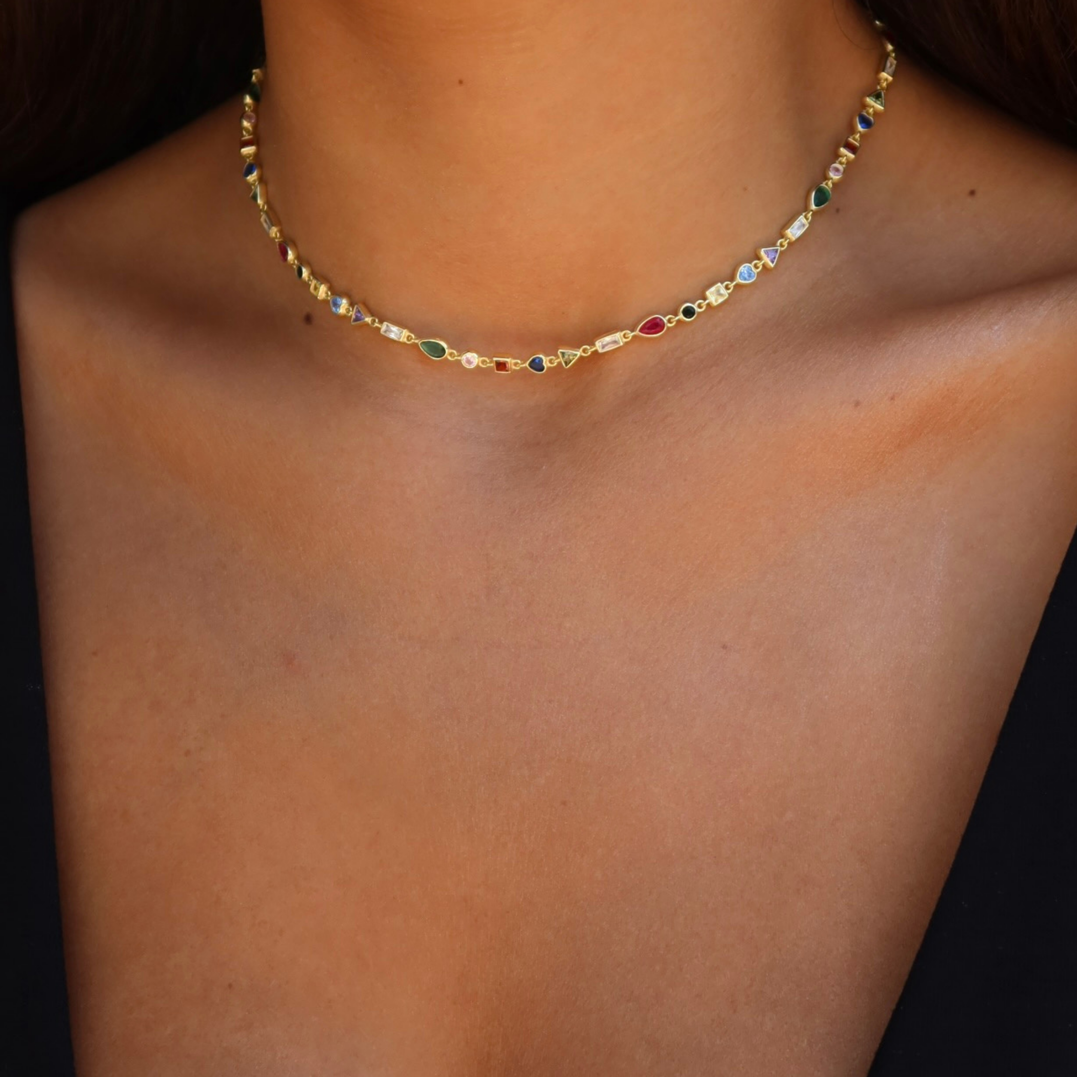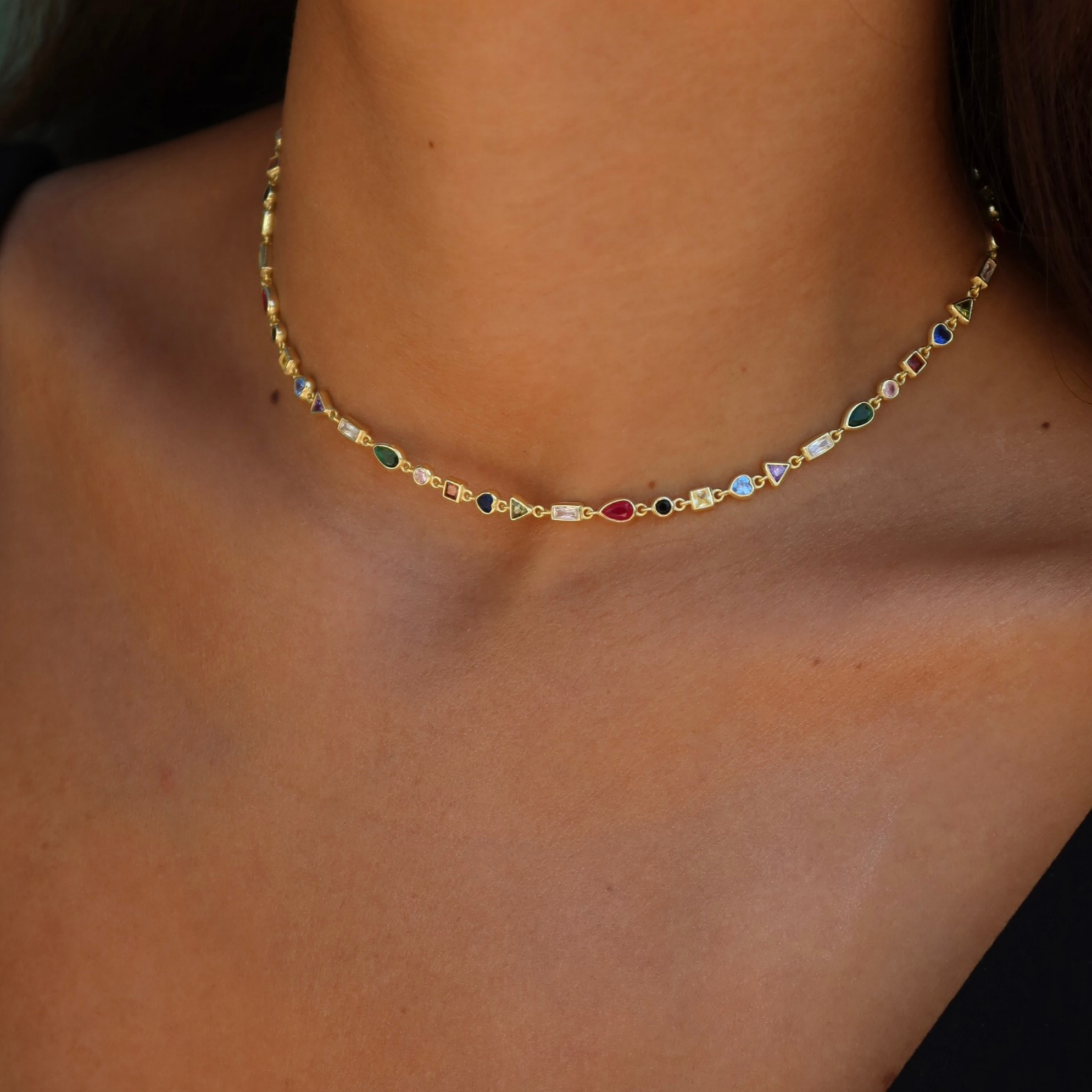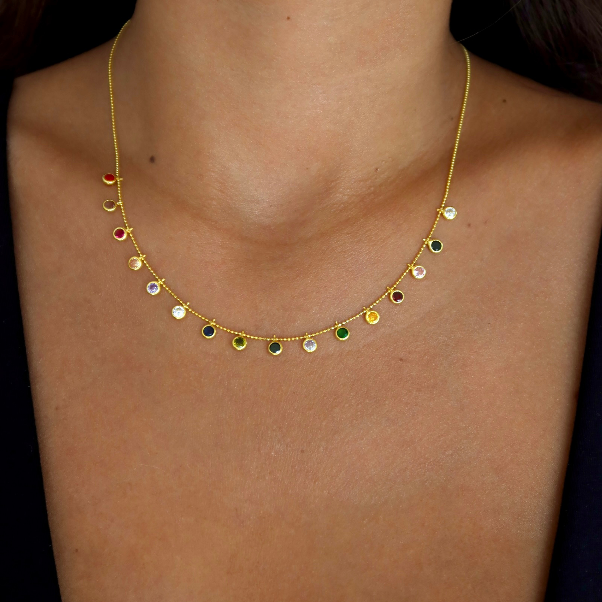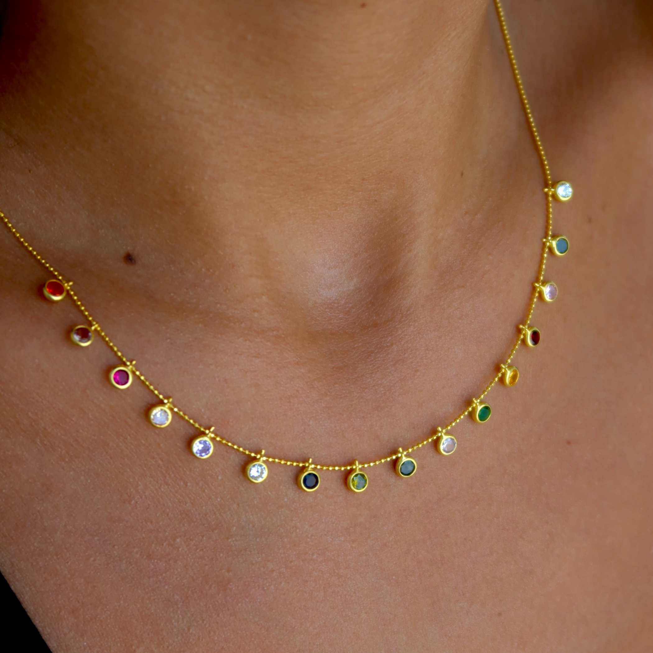 925 Gümüş | Çok Renkli Mini Taşlı Kolye