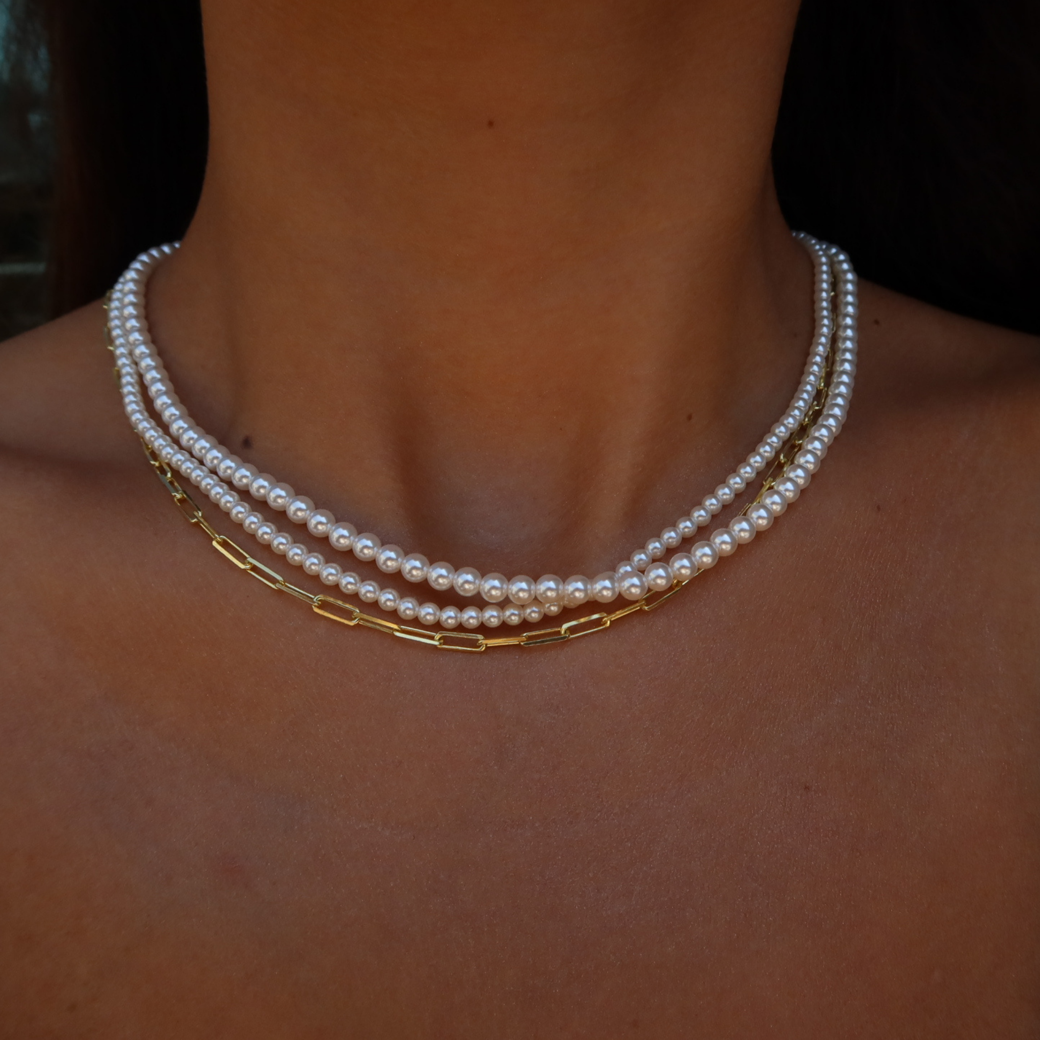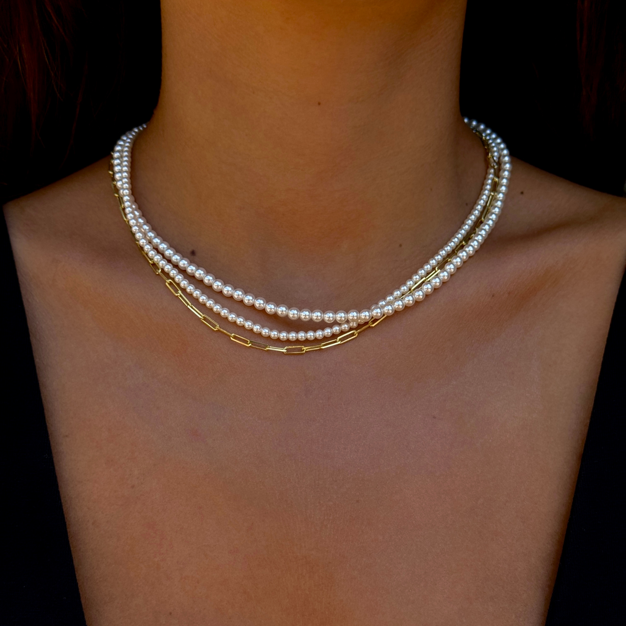 925 Gümüş | Üç Katmanlı İnci-Zincir Kombin Kolye