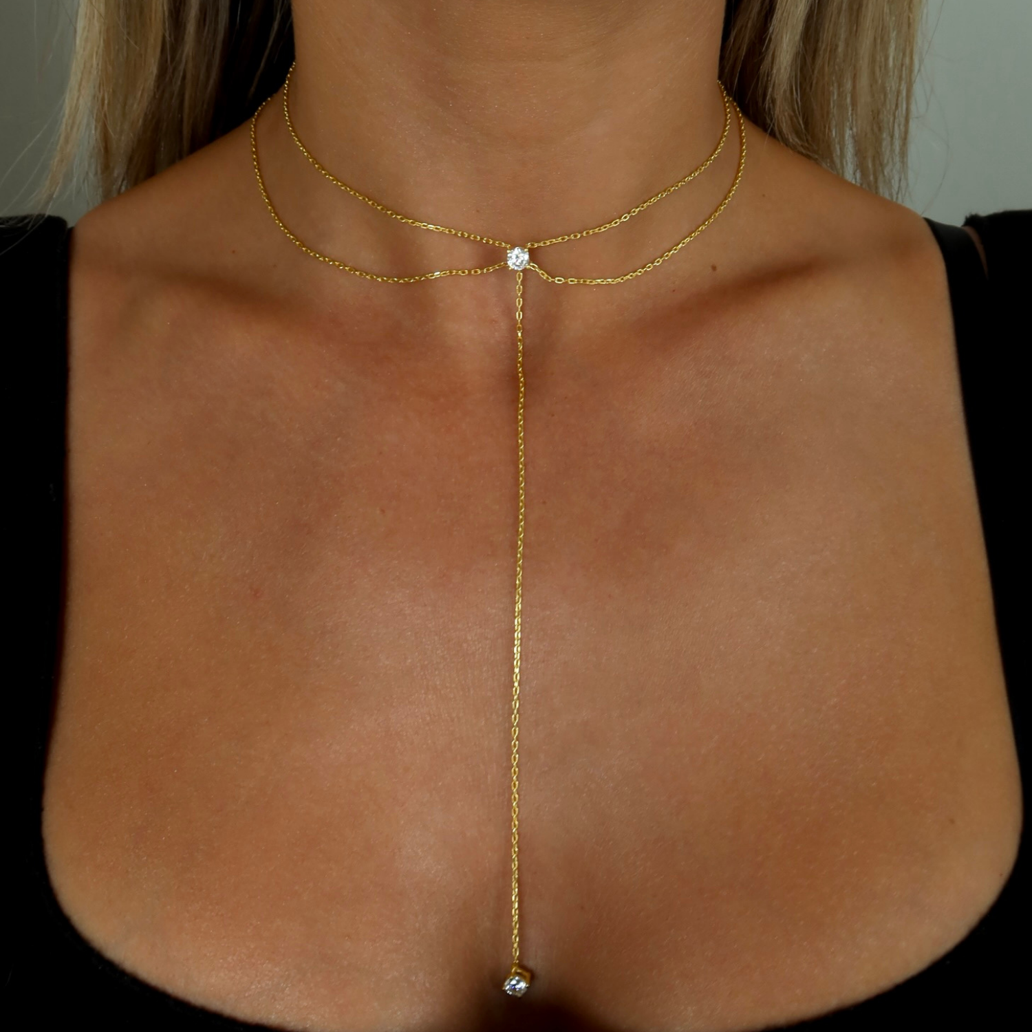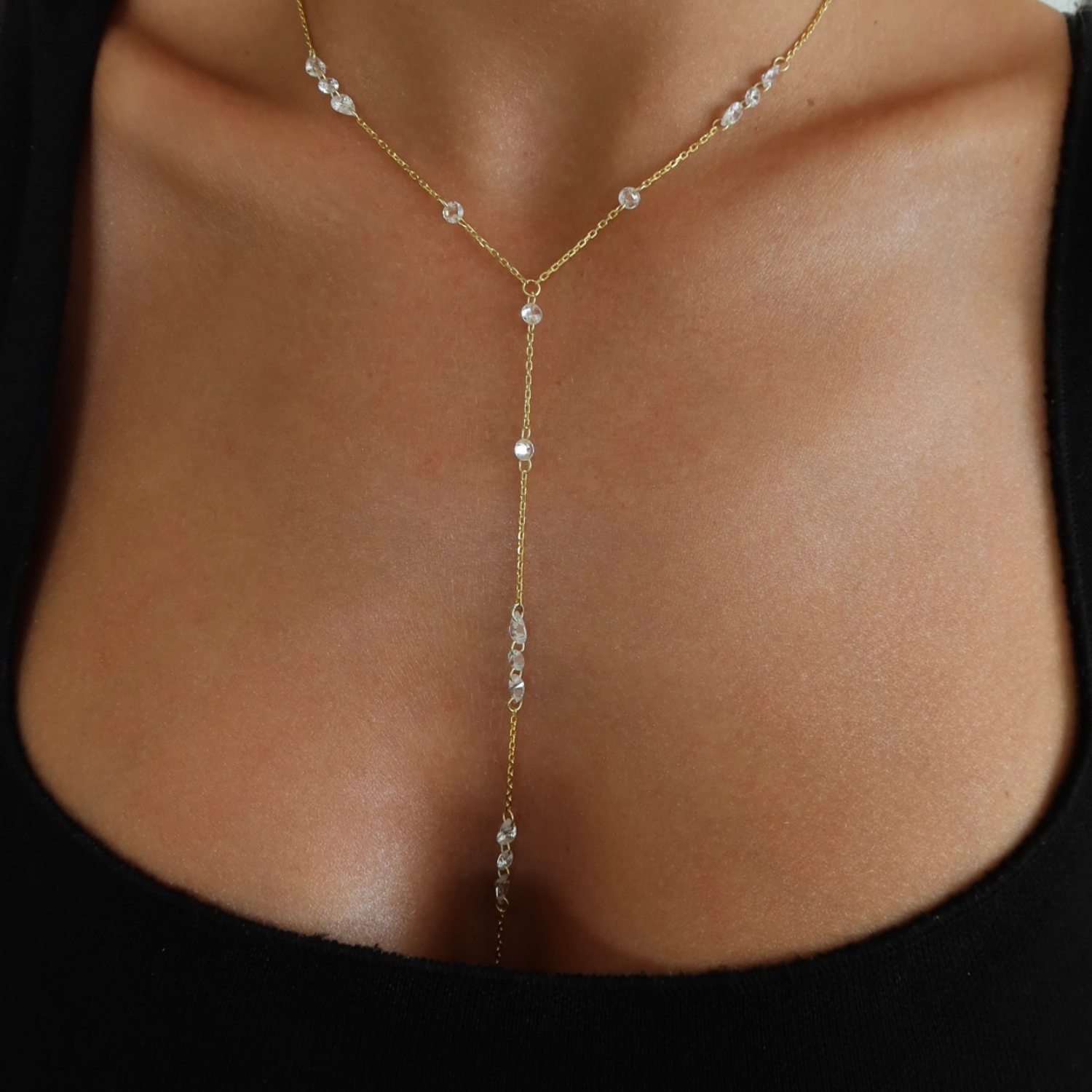 925 Gümüş | Taşlı Y Zincir Kolye