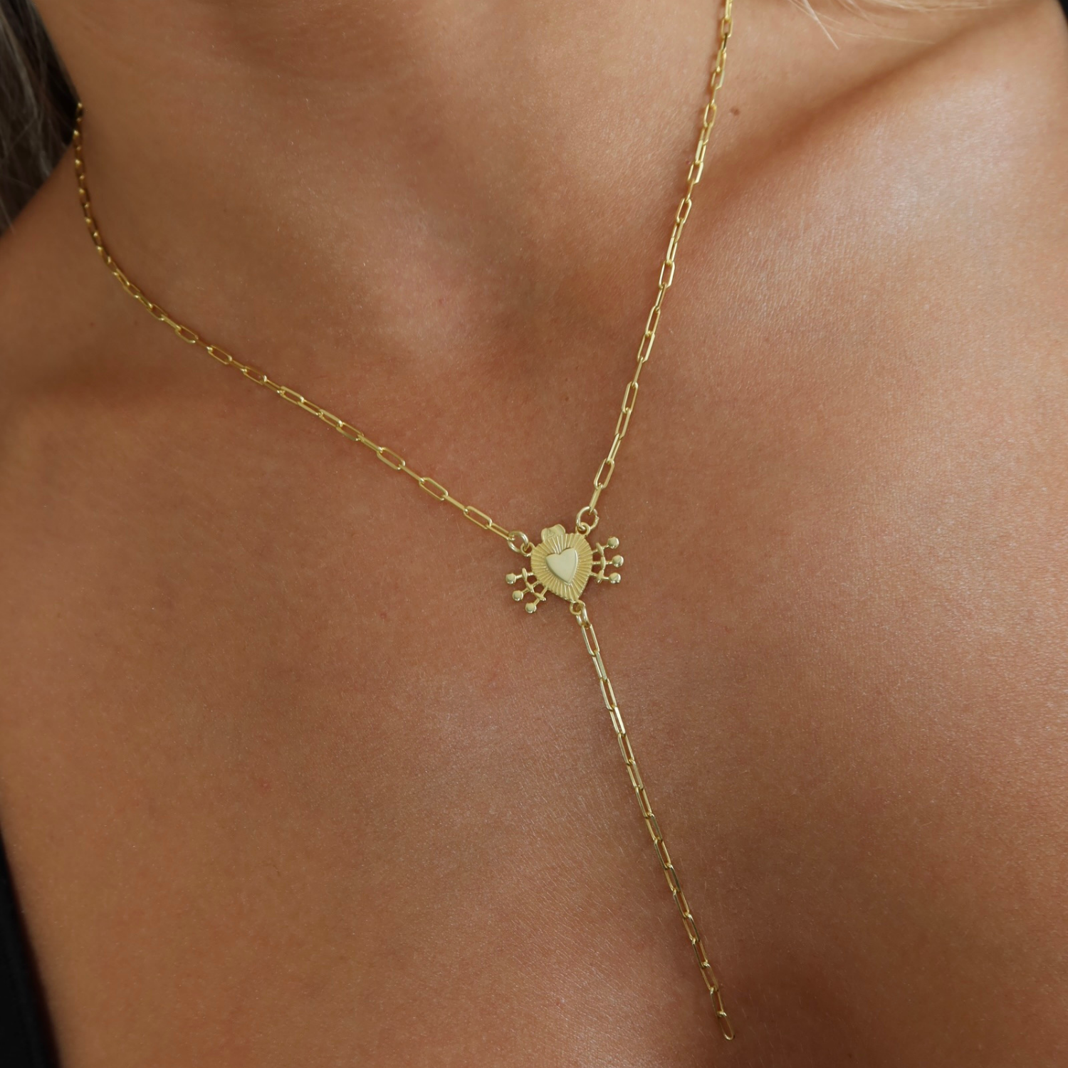 925 Gümüş | Kalpli Ataç Zincirli Y Kolye