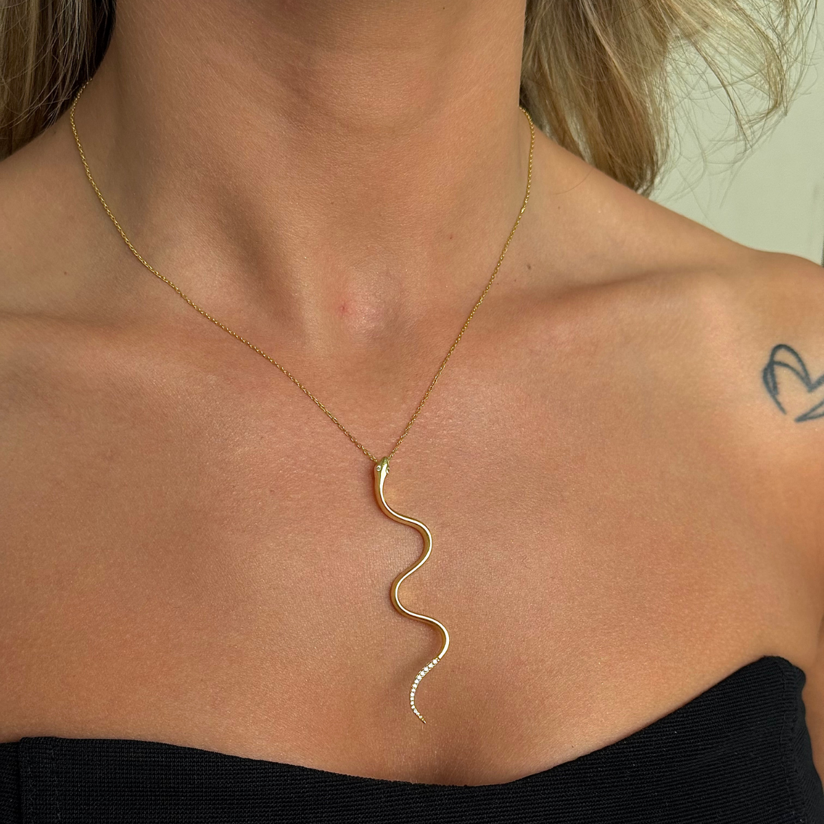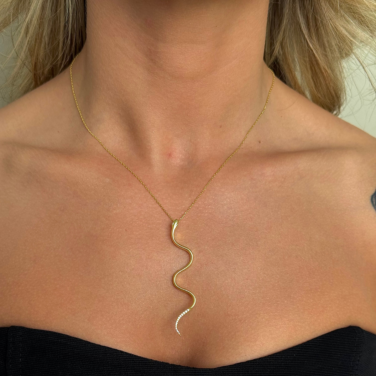 925 Gümüş | Taş Detaylı Yılan Kolye