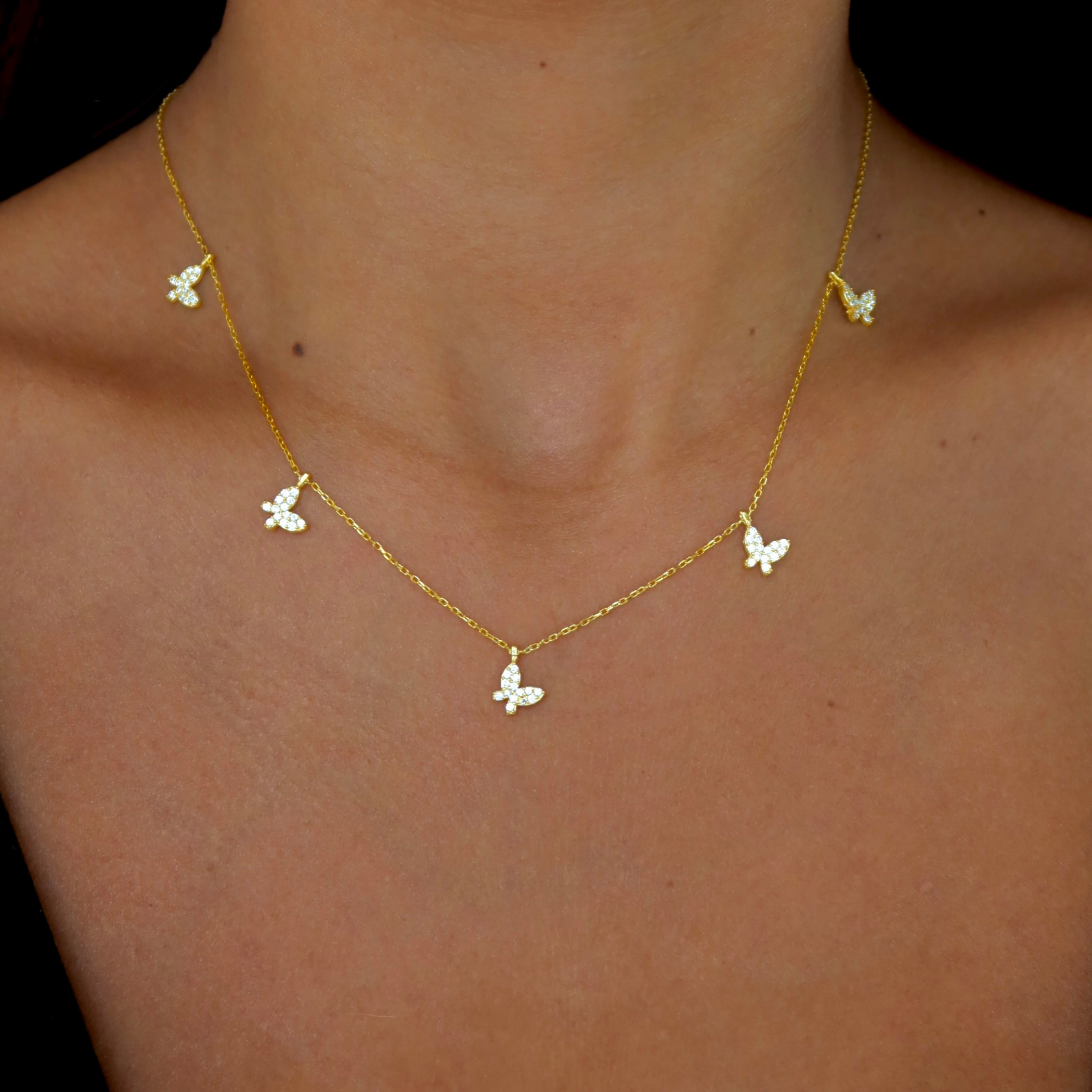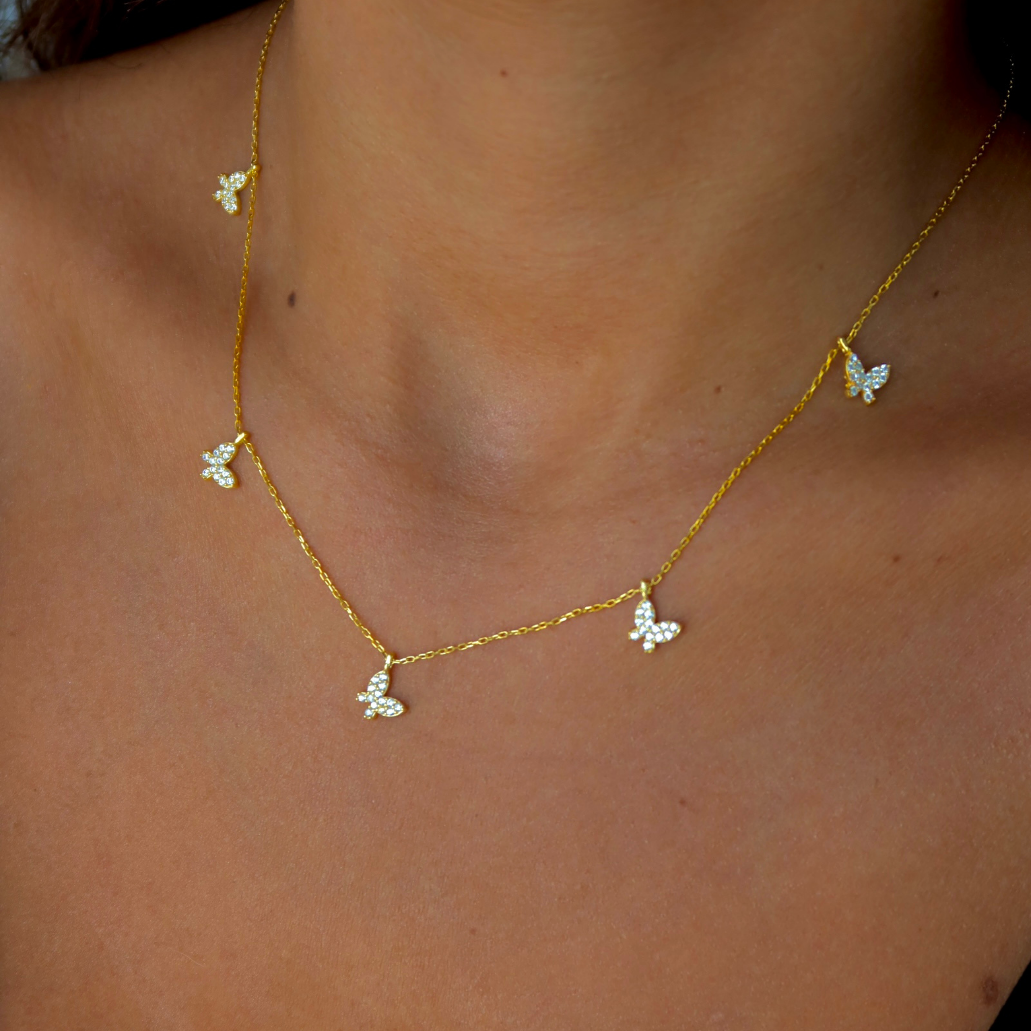 925 Gümüş | Taşlı Kelebek Charm Kolye