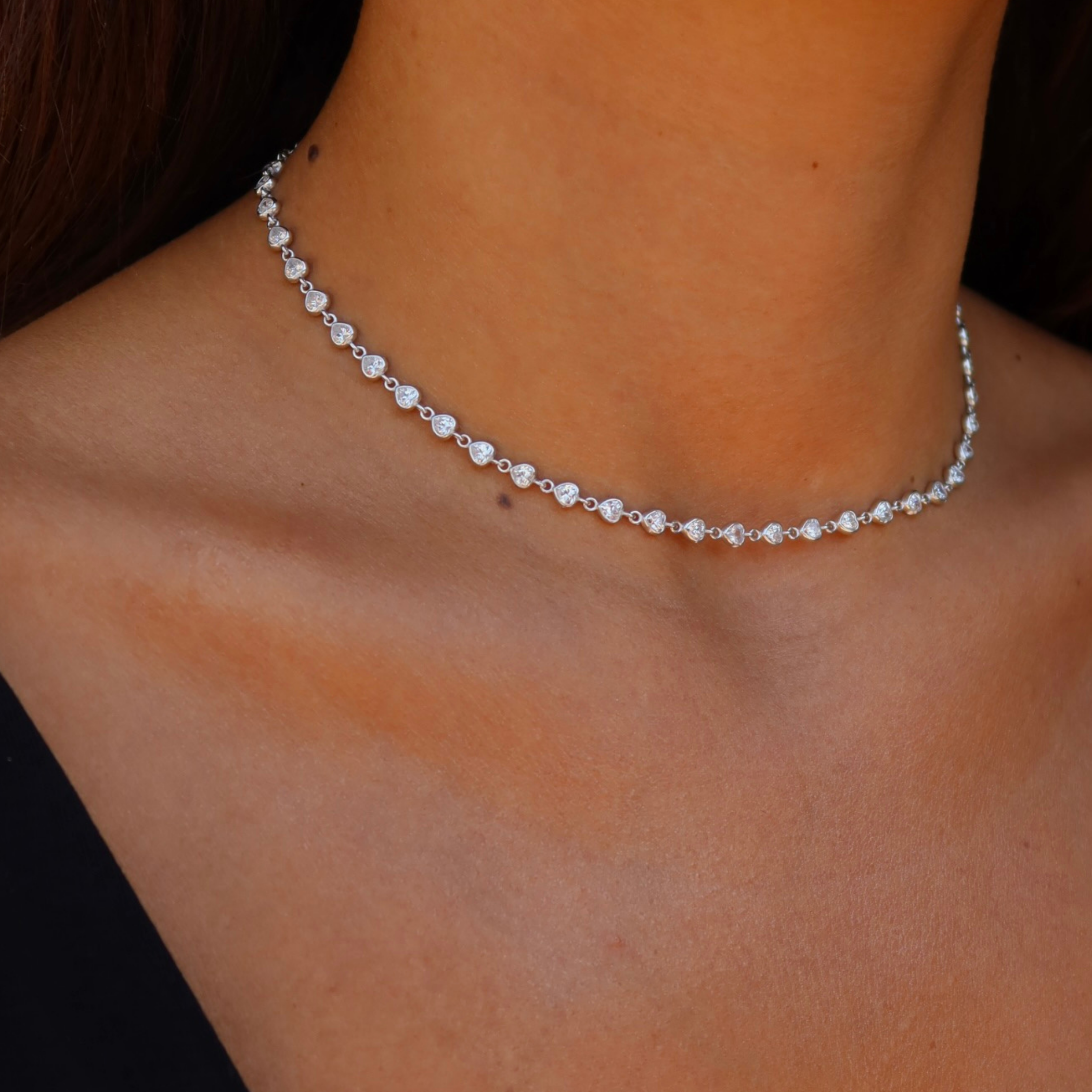 925 Gümüş | Zirkon Taşlı Kalp Choker Kolye