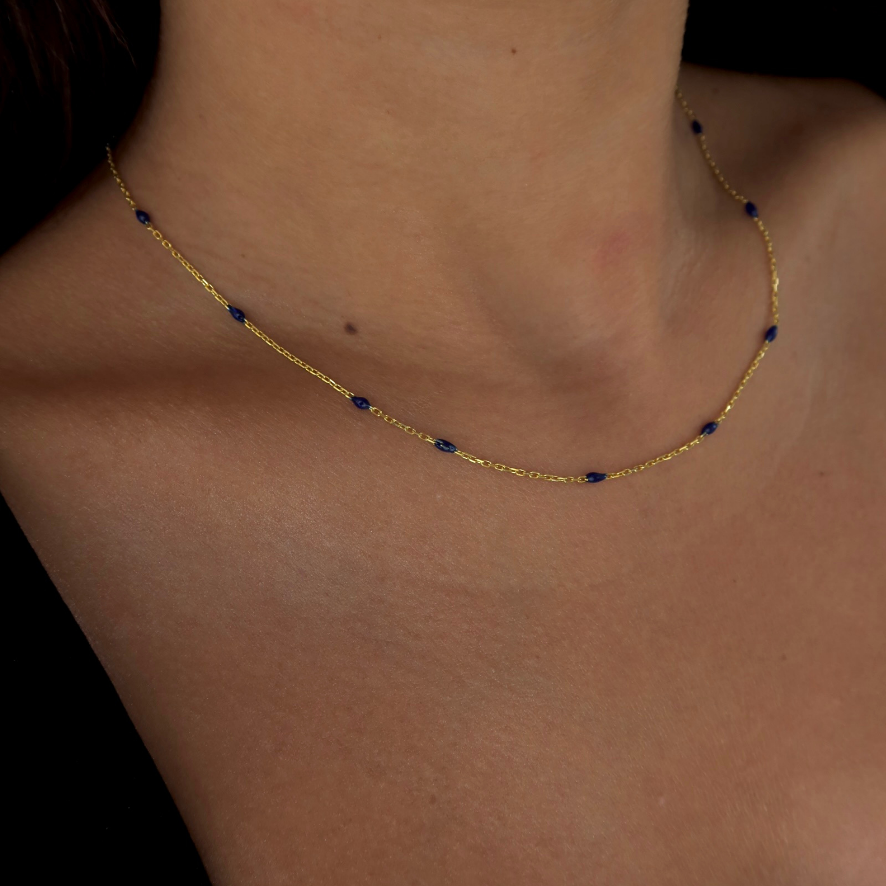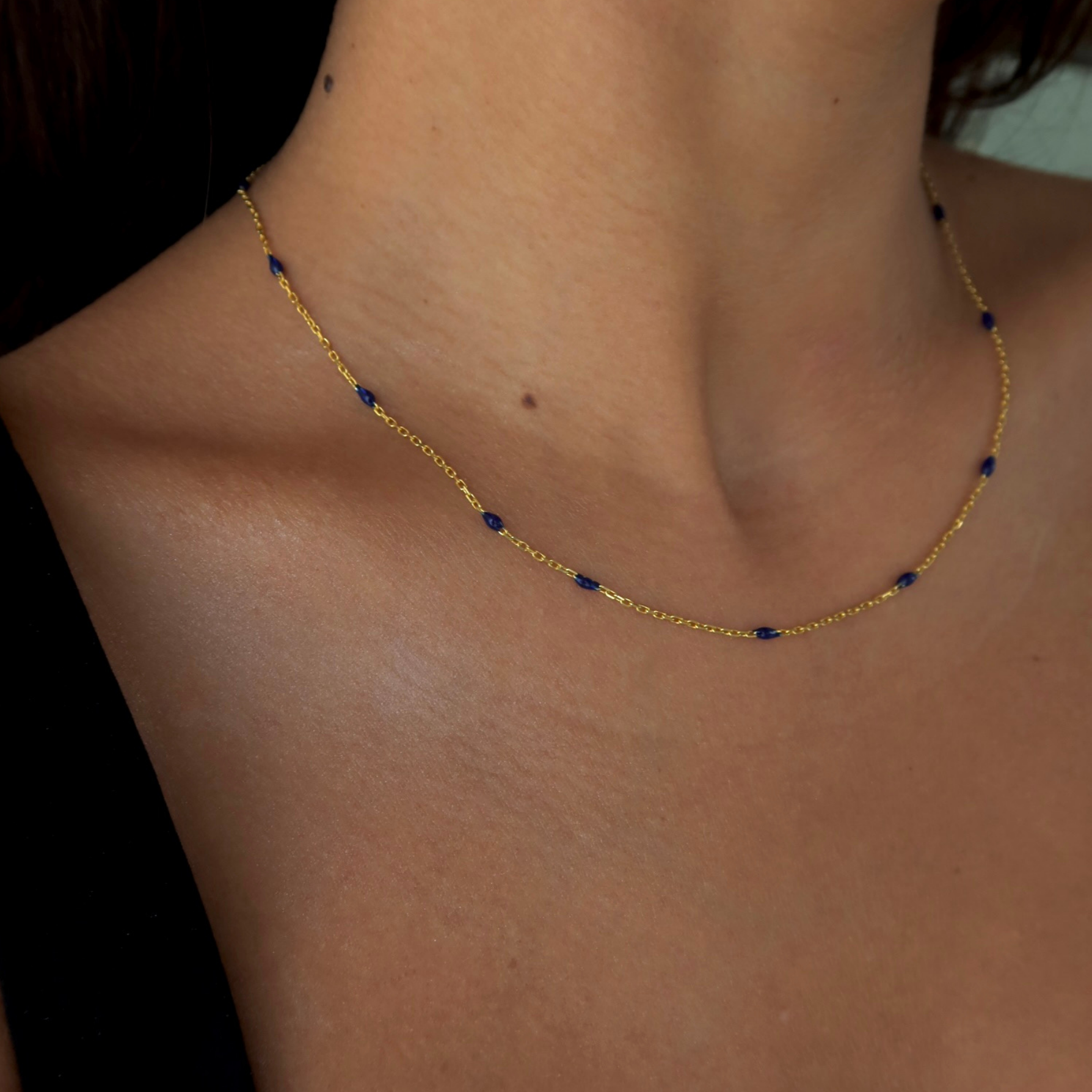 925 Gümüş | Lacivert Mineli İnce Kolye