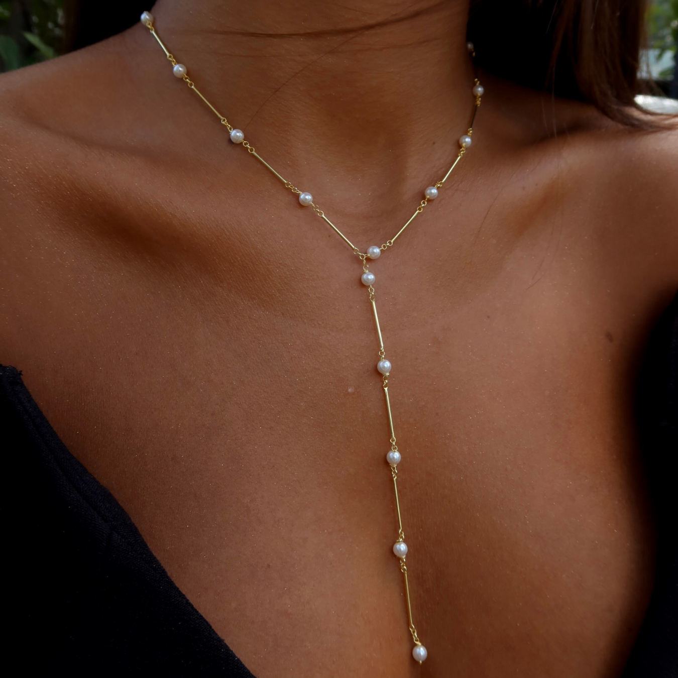 925 Gümüş | İncili Y Zincir Kolye