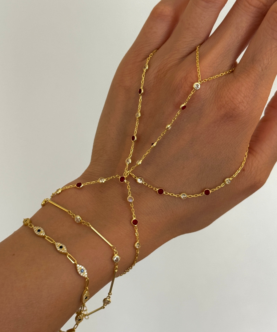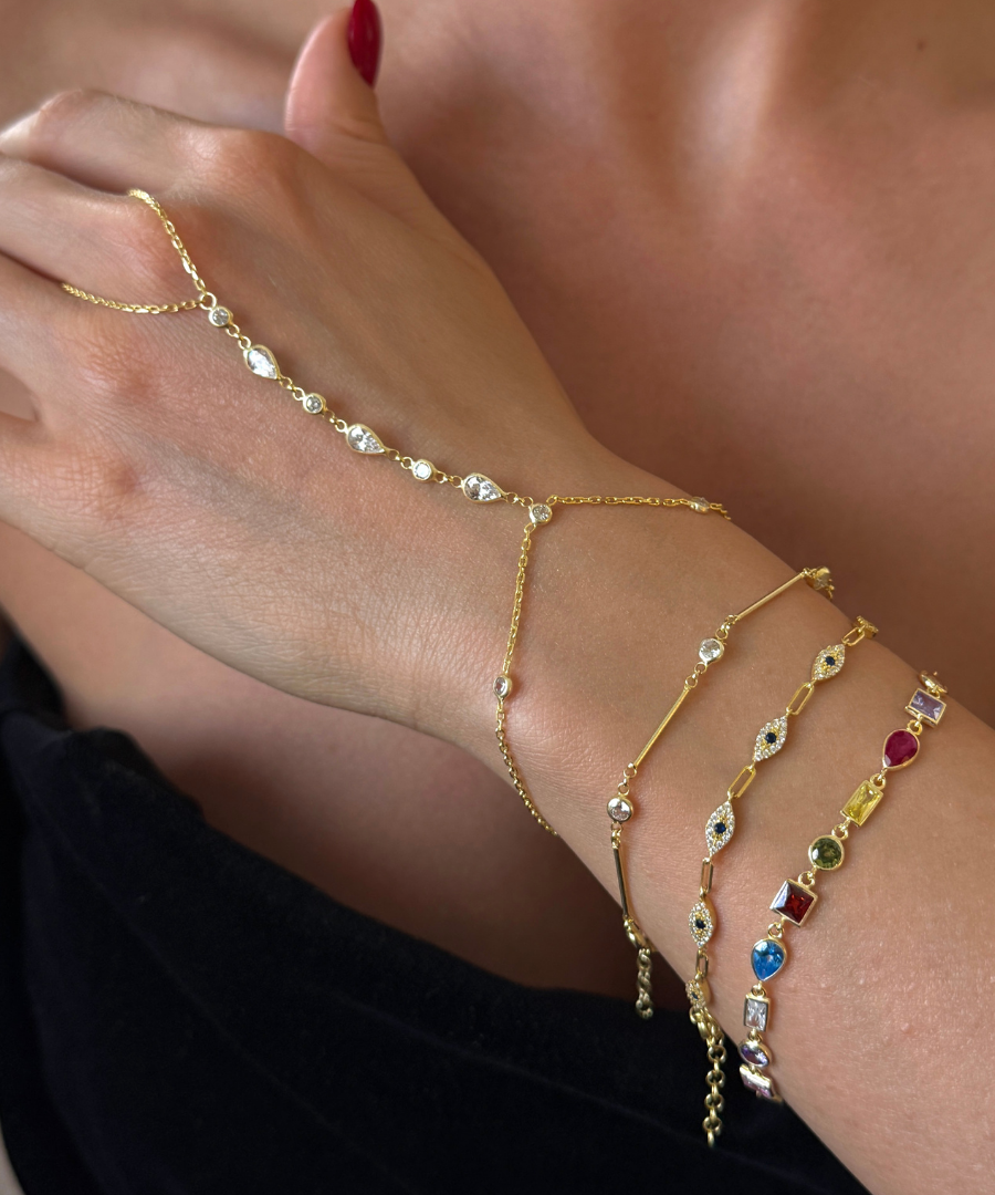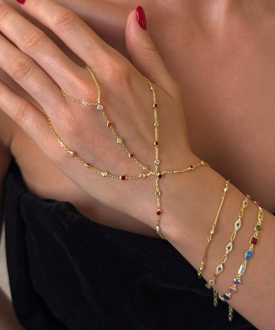 925 Gümüş | 3 Zincirli Renkli Yuvarlak Taşlı Şahmeran