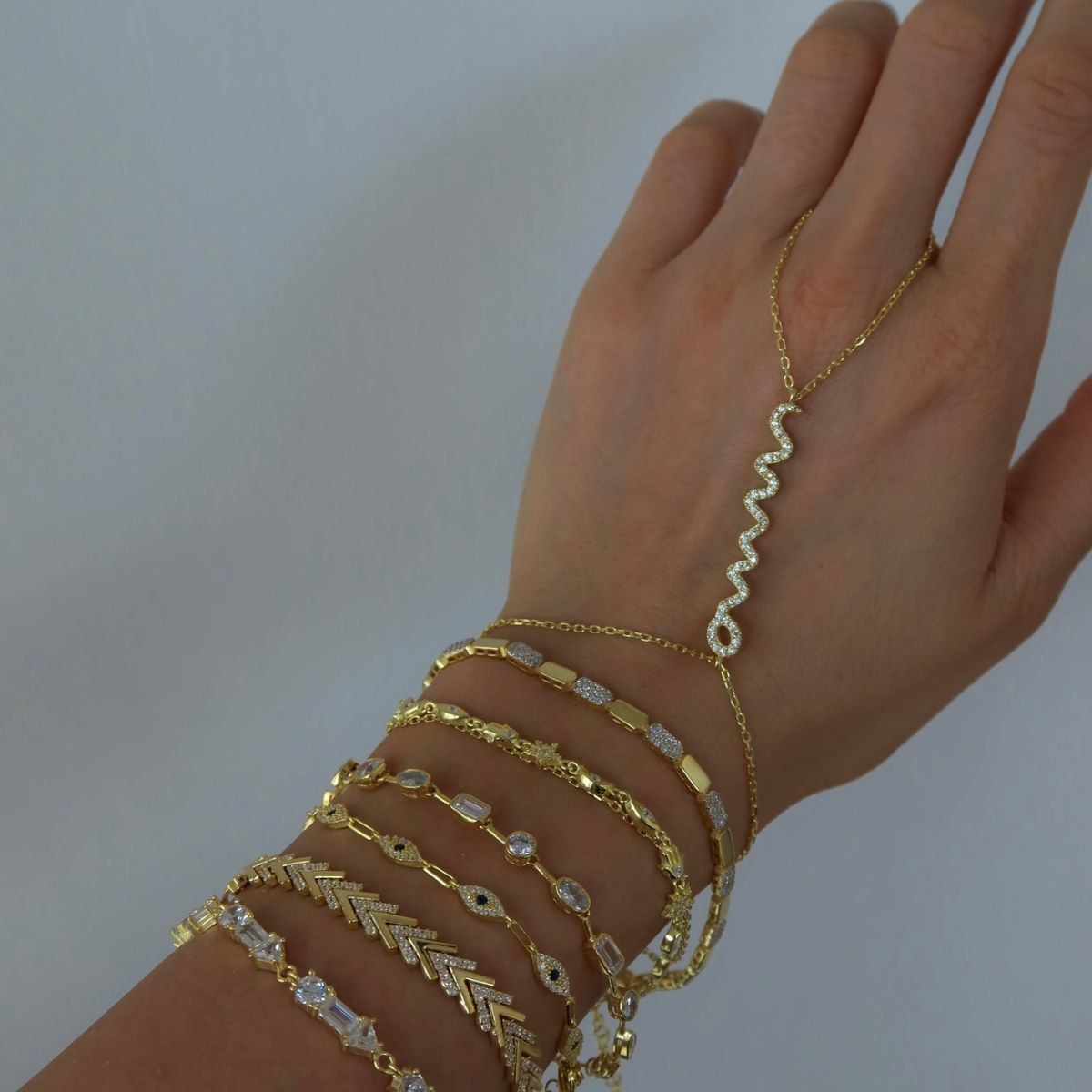 Taşlı Yılan Figürlü Şahmeran, 925 ayar gümüştür. Gold seçeneğinde altın kaplama yapılmaktadır. Bileklik zincir uzunluğu 15 cm'dir +5 cm uzatma zinciri vardır. Kapalıçarşı’daki atölyemizde ustalıkla üretilmiştir.