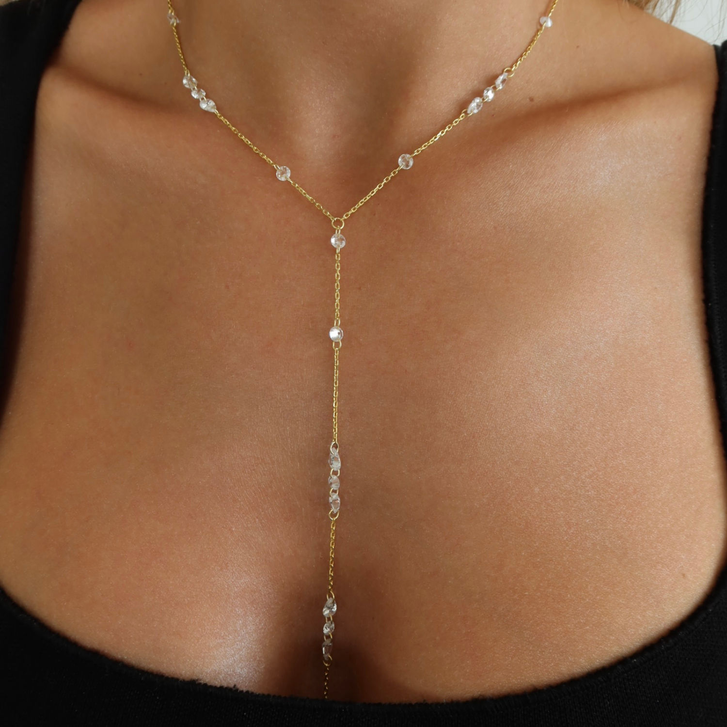 Taşlı Y Zincir Kolye, 925 ayar gümüştür.