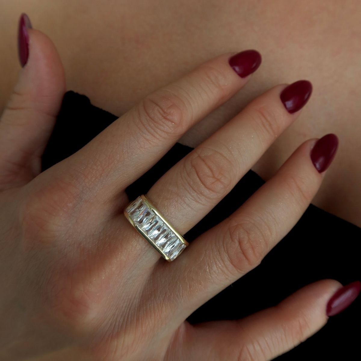 925 Gümüş | Şerit Baget Taşlı Yüzük