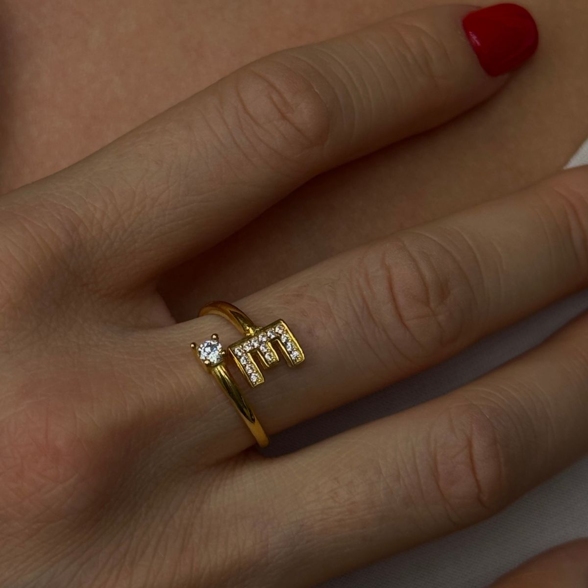 Taşlı Harf Yüzük, 925 ayar gümüştür. Gold seçeneğinde altın kaplama yapılmaktadır. Ayarlanabilir formu sayesinde farklı parmak ölçülerine kolayca uyum sağlar. Kapalıçarşı’daki atölyemizde ustalıkla üretilmiştir.