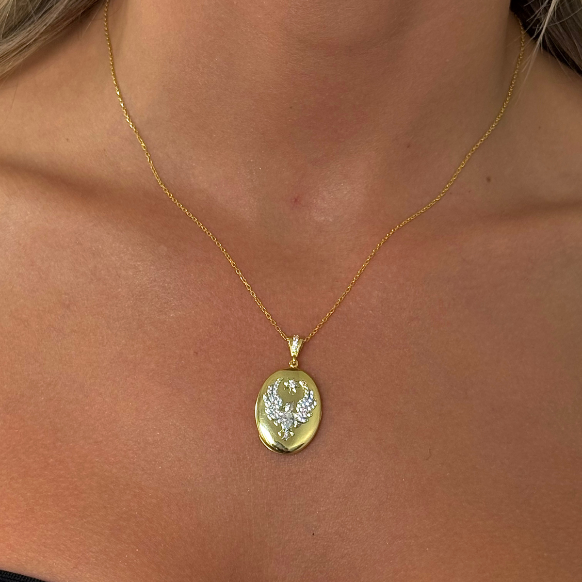 Anka Kuşu Kolye, 925 ayar gümüştür.  Altın seçeneğinde altın kaplama yapılmaktadır. Zincir uzunluğu 40 cm + 5 cm uzatma zincirlidir.
