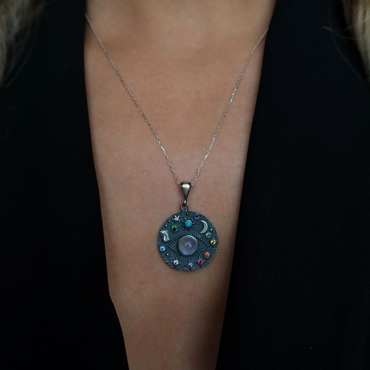 925 Gümüş | Ay Taşı Galaksi Kolye
