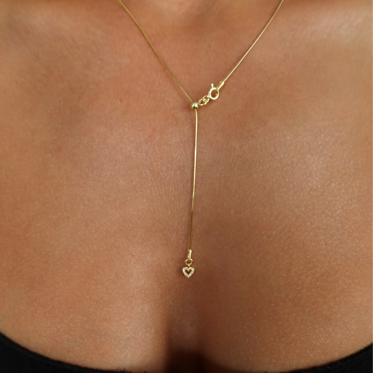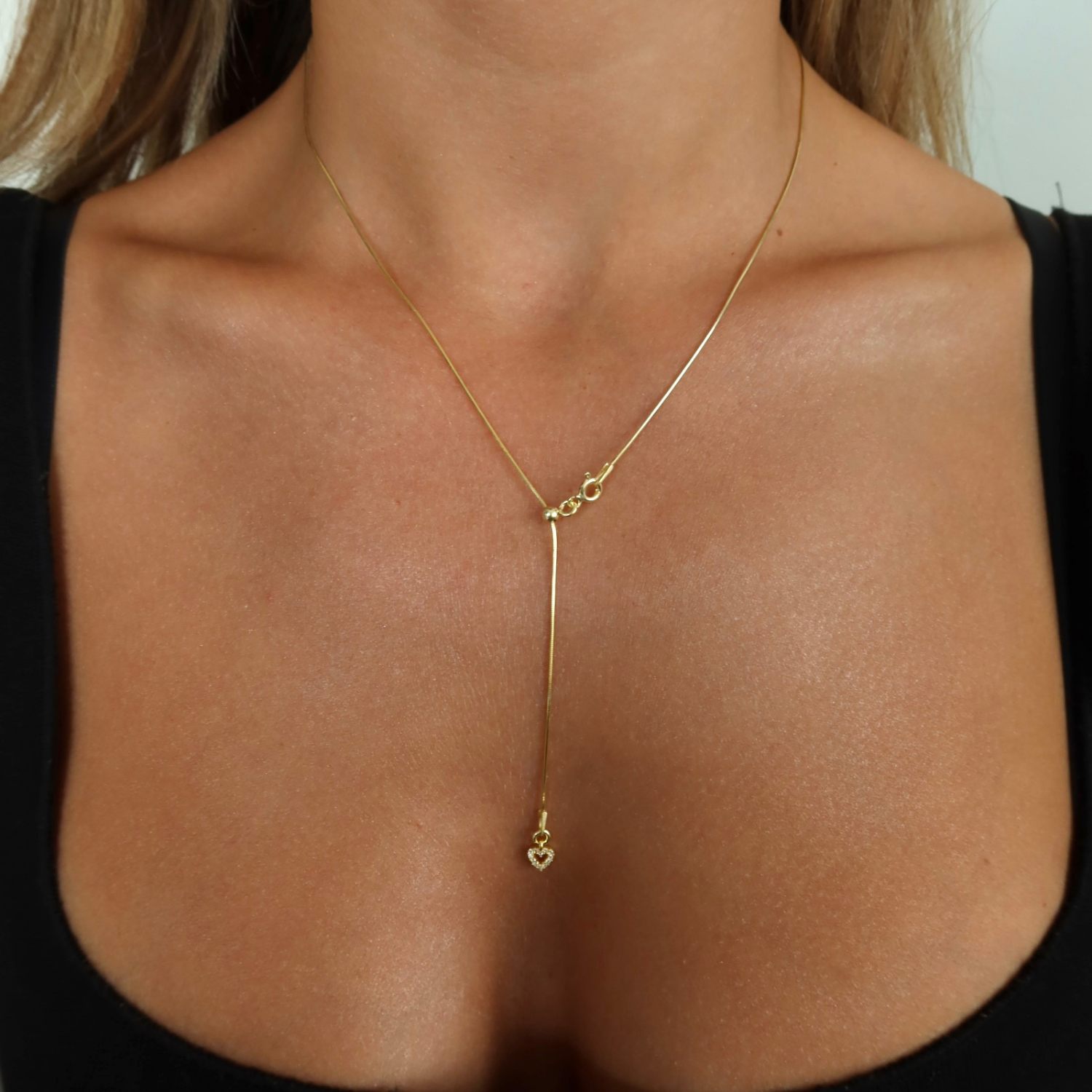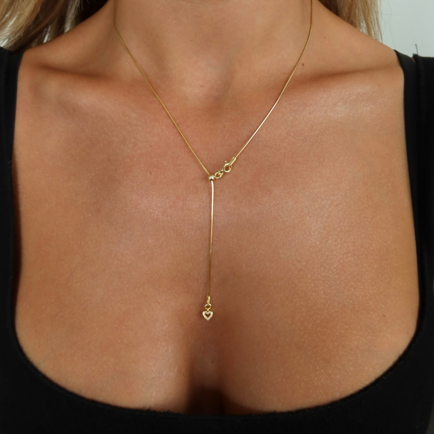 Ayarlanabilir Asansör Zincirli Kalp Kolye, 925 ayar gümüştür. Gold seçeneğinde altın kaplama yapılmaktadır.