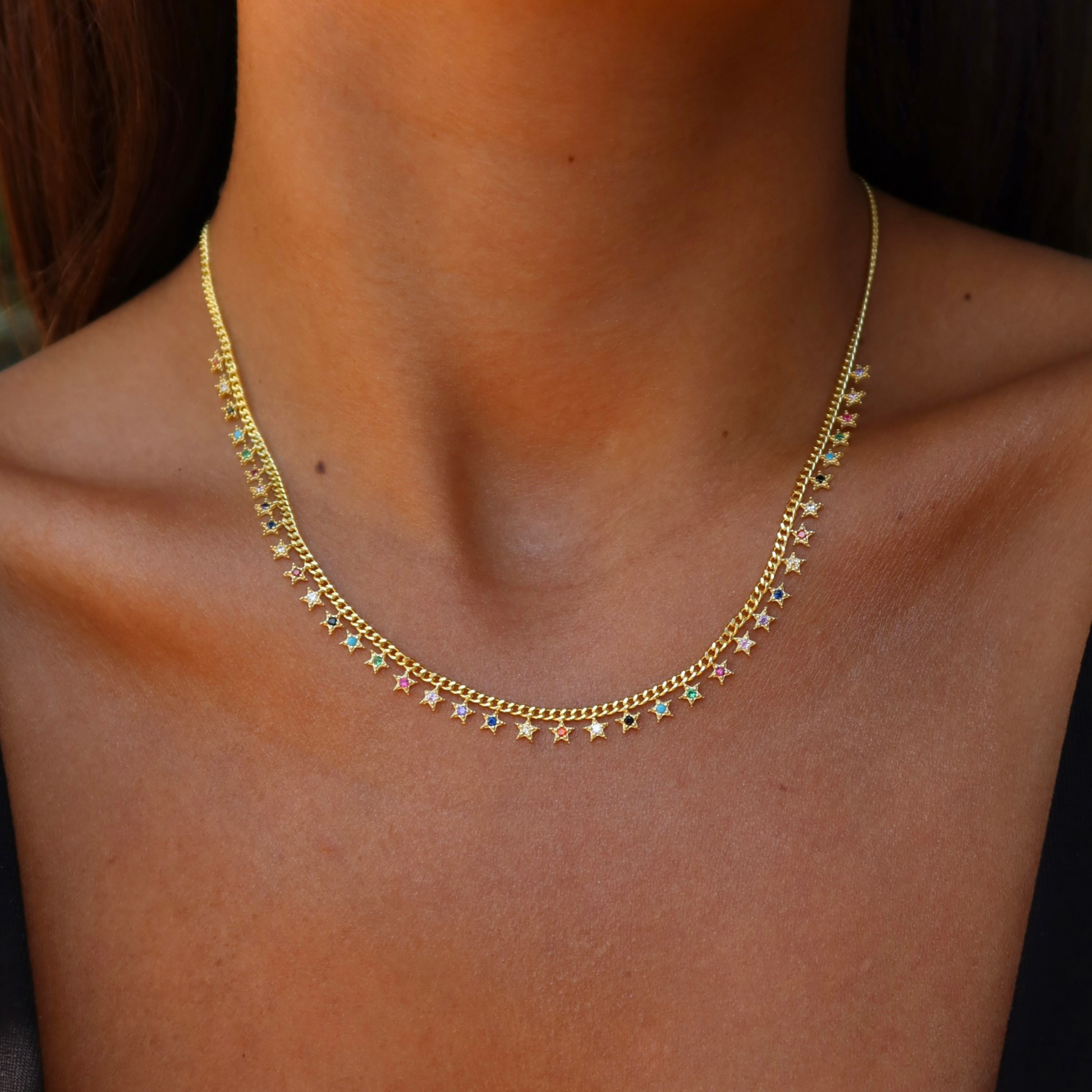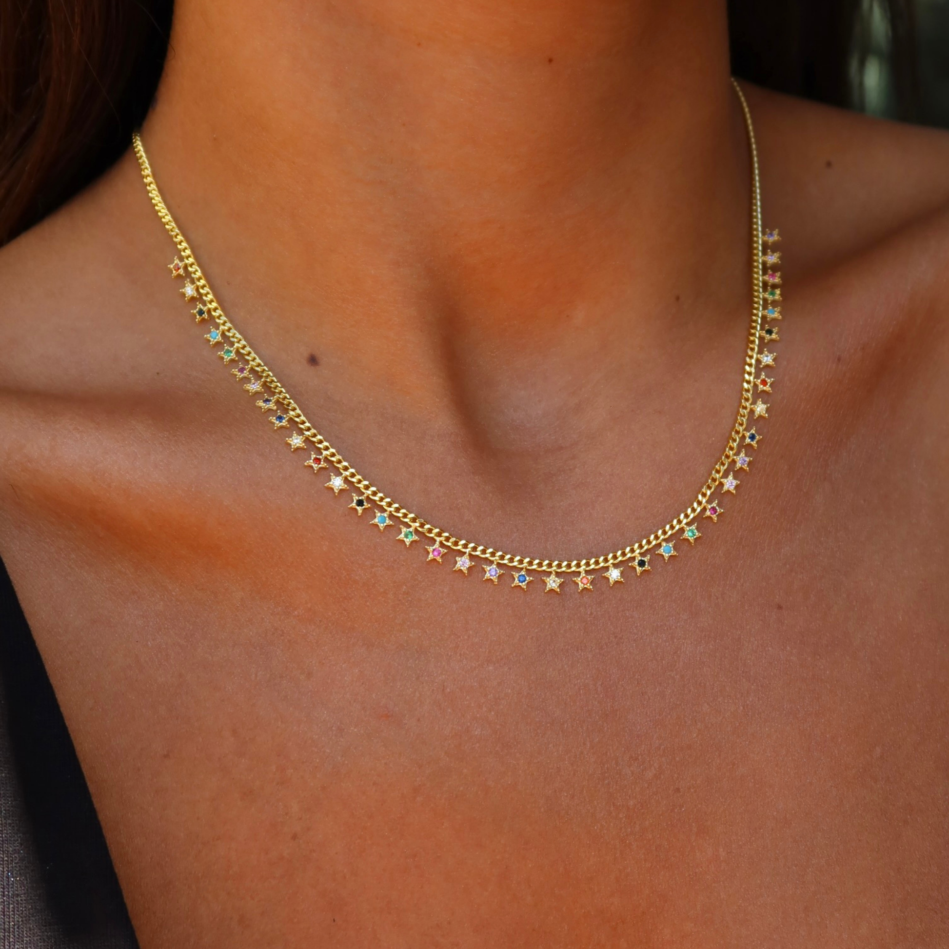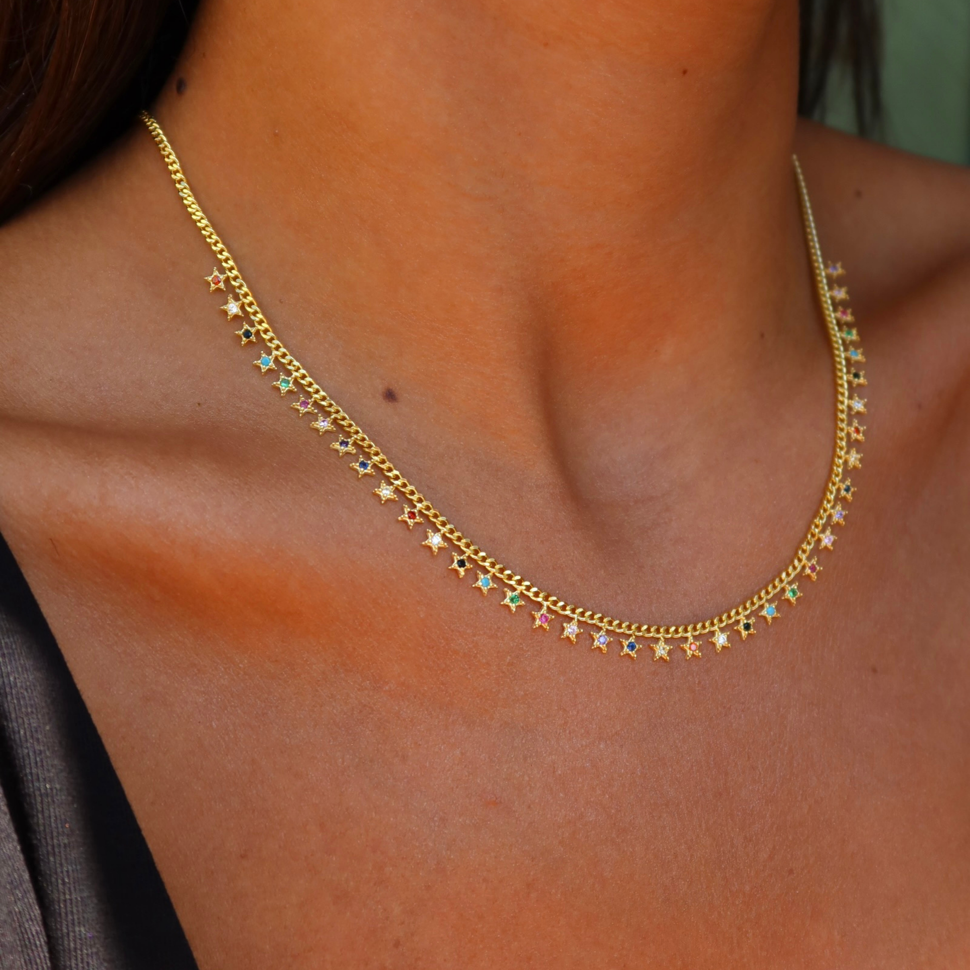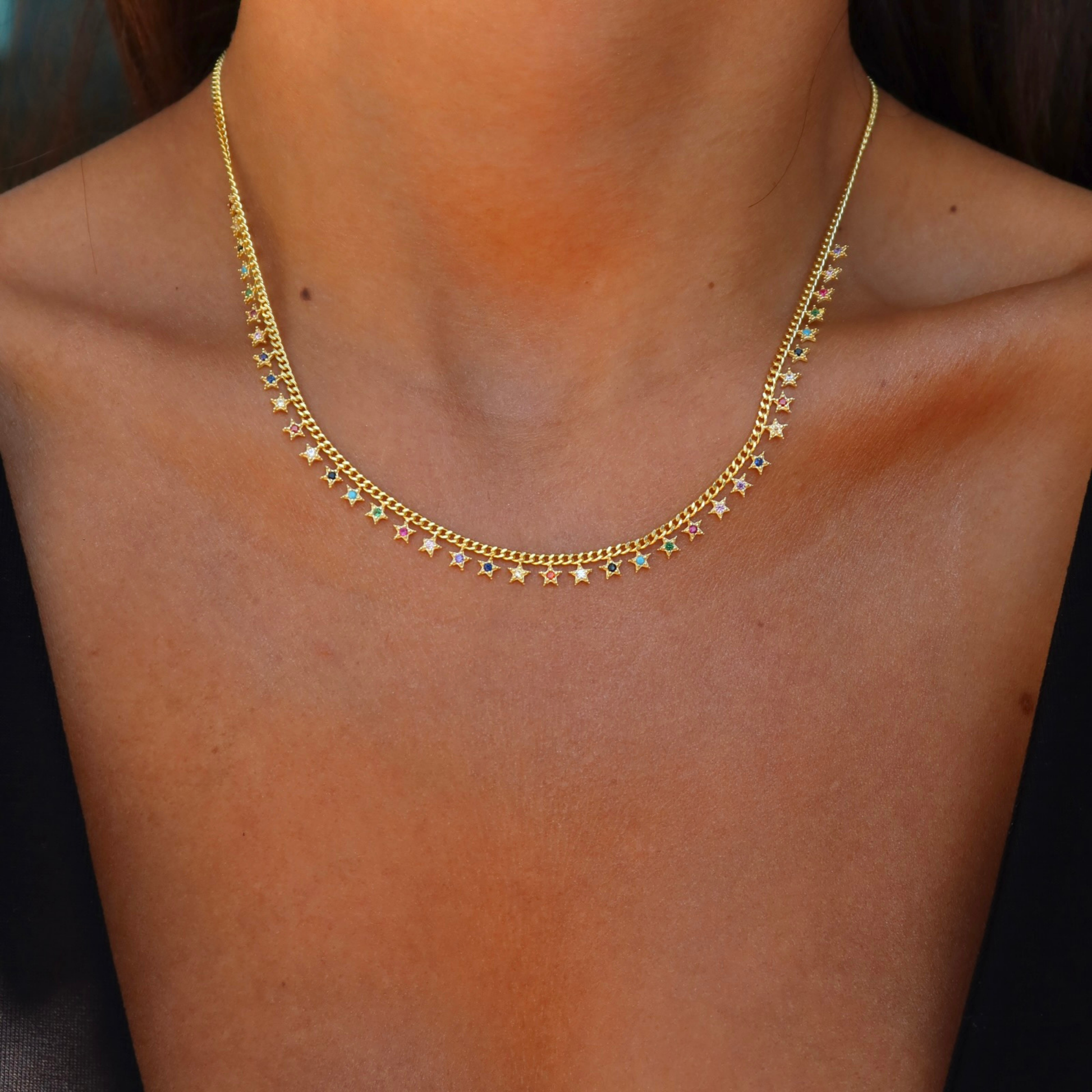 Gurmet Renkli Yıldız Kolye, 925 ayar gümüştür. Uzunluk 40 cm'dir +5 cm uzatma zinciri vardır.