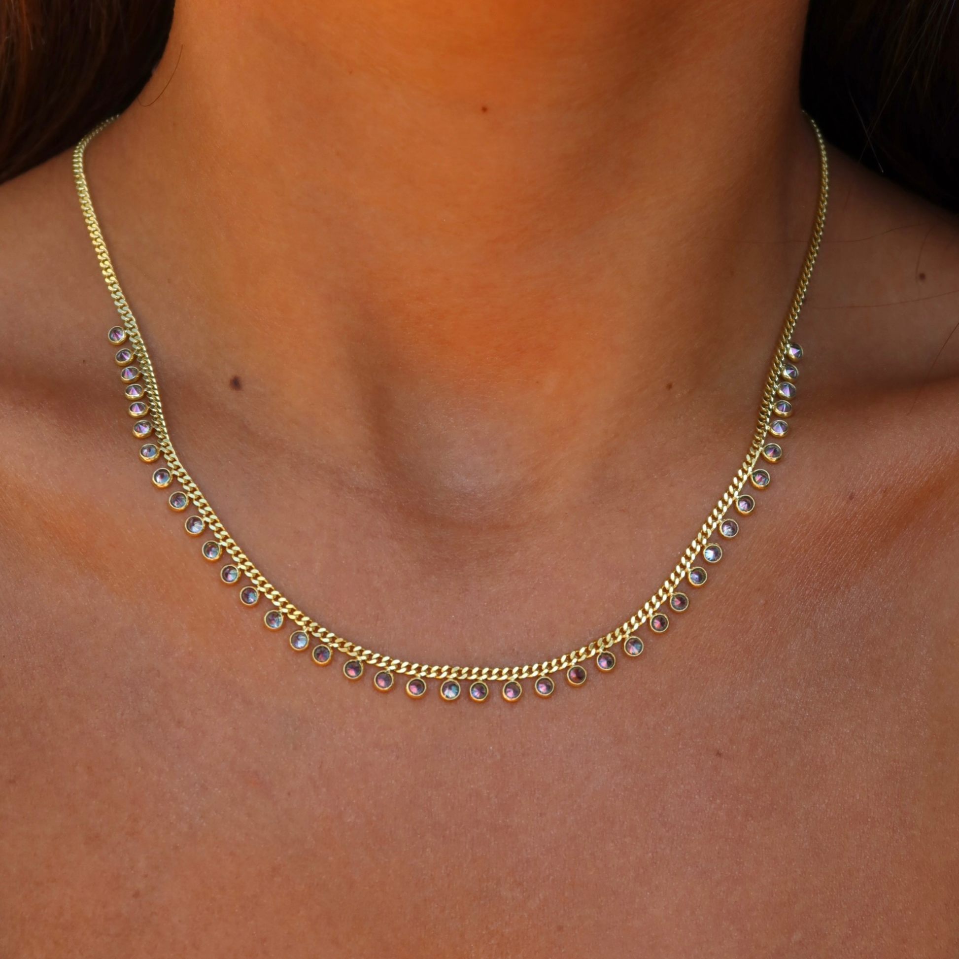 Gurmet Renkli Mini Taş Kolye, 925 ayar gümüştür. Uzunluk 40 cm'dir +5 cm uzatma zinciri vardır.