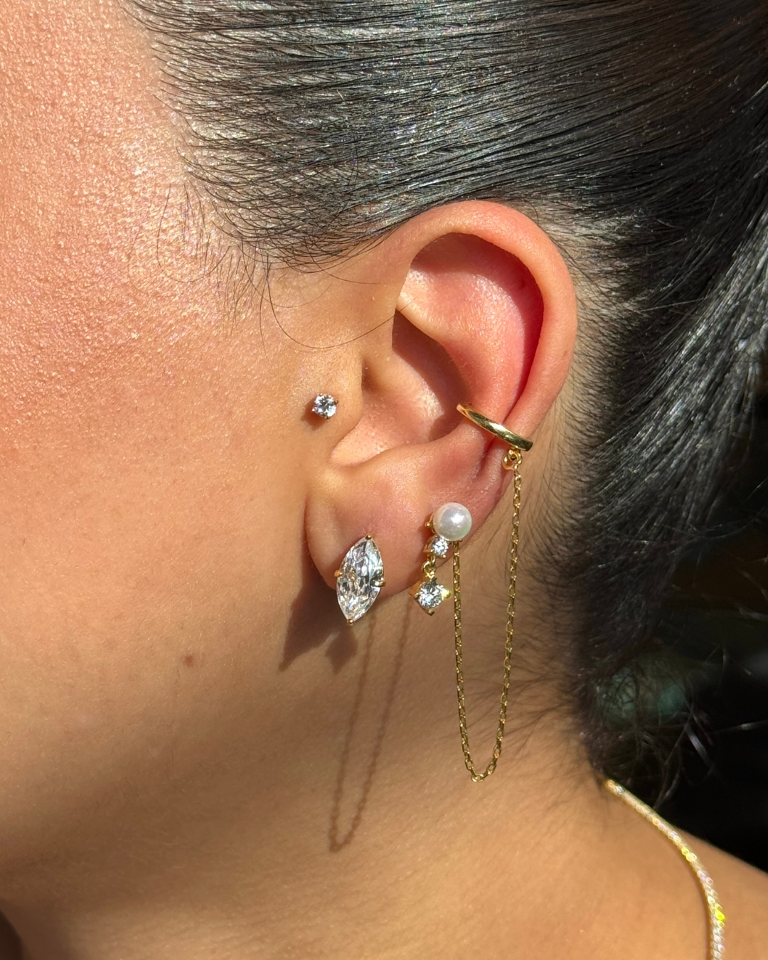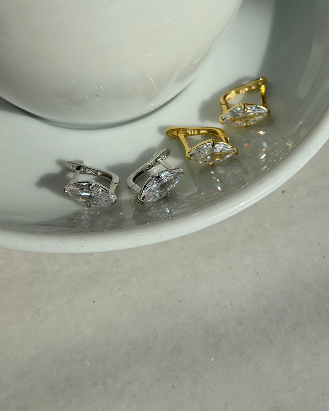 Markiz Taşlı Kilit Küpe, 925 ayar gümüştür. Gold seçeneğinde altın kaplama yapılmaktadır. Kapalıçarşı’daki atölyemizde ustalıkla üretilmiştir.
