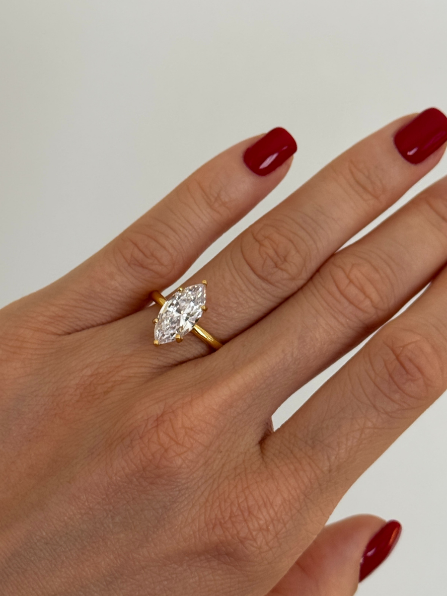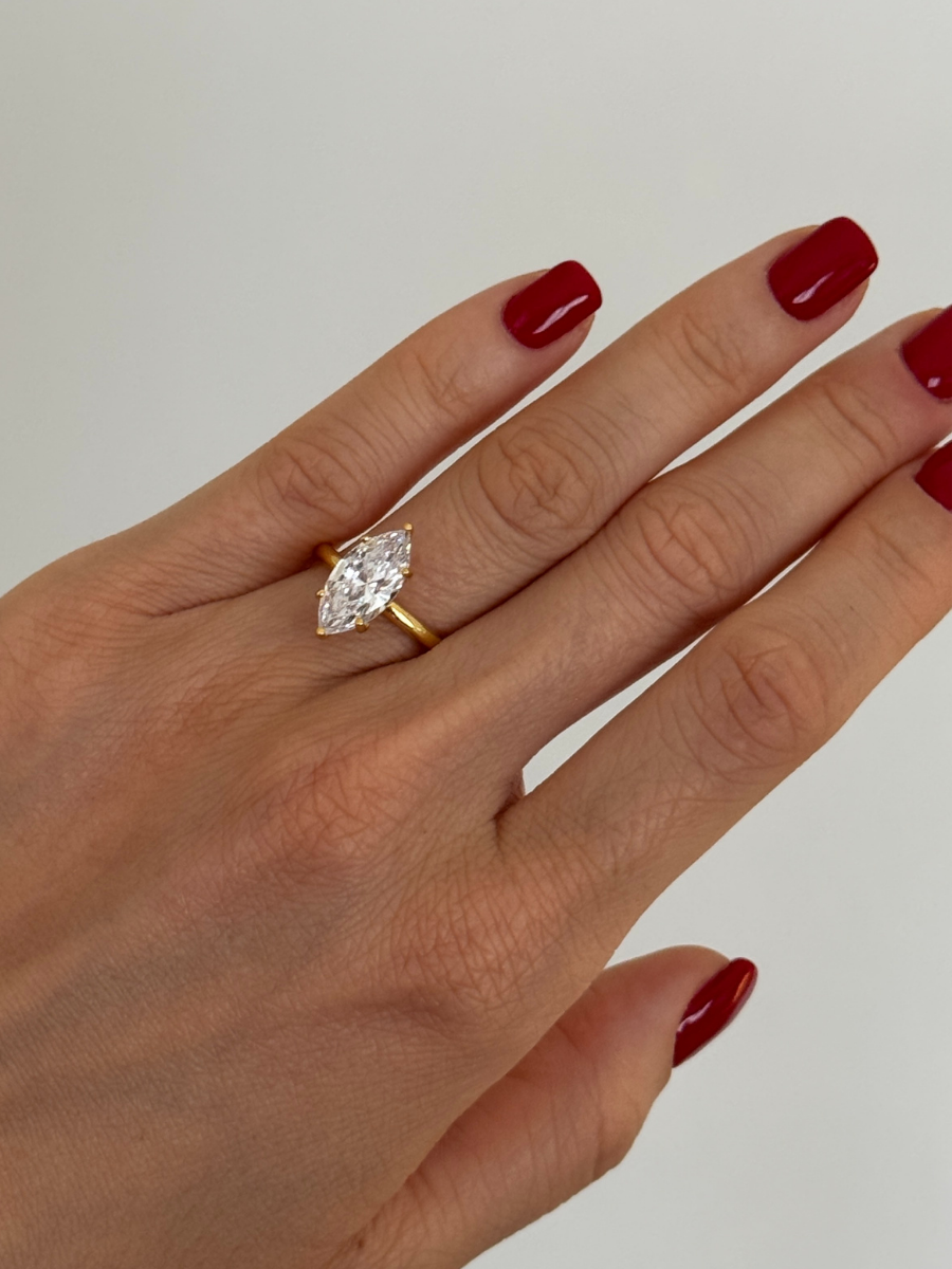 Markiz Tek Taş Yüzük, 925 ayar gümüştür. Gold seçeneğinde altın kaplama yapılmaktadır. Ayarlanabilir formu sayesinde farklı parmak ölçülerine kolayca uyum sağlar. Kapalıçarşı’daki atölyemizde ustalıkla üretilmektedir.