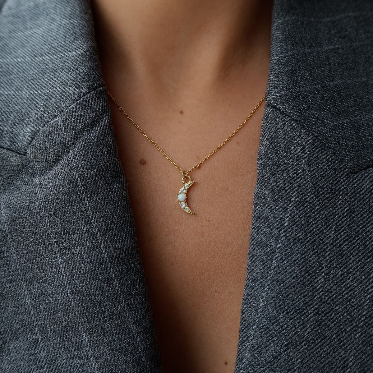 Opal Ay Kolye, 925 ayar gümüştür. Gold seçeneğinde altın kaplama yapılmaktadır. Zincir uzunluğu 40 cm + 5 cm uzatma zincirlidir.