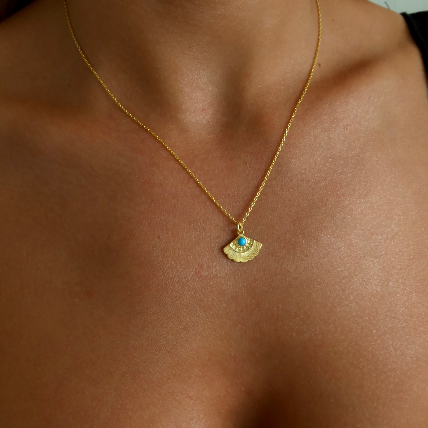 Renkli Taşlı Yelpaze Kolye, 925 ayar gümüştür. Gold seçeneğinde altın kaplama yapılmaktadır. Zincir uzunluğu 40 cm + 5 cm uzatma zincirlidir.