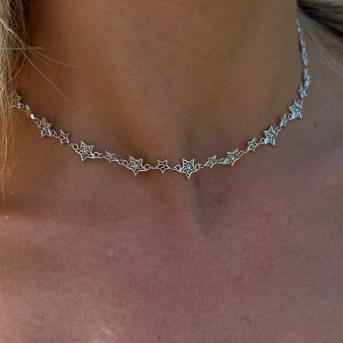 Stella Choker Kolye, 925 ayar gümüştür. Uzunluk 35 cm'dir +5 cm uzatma zinciri vardır.