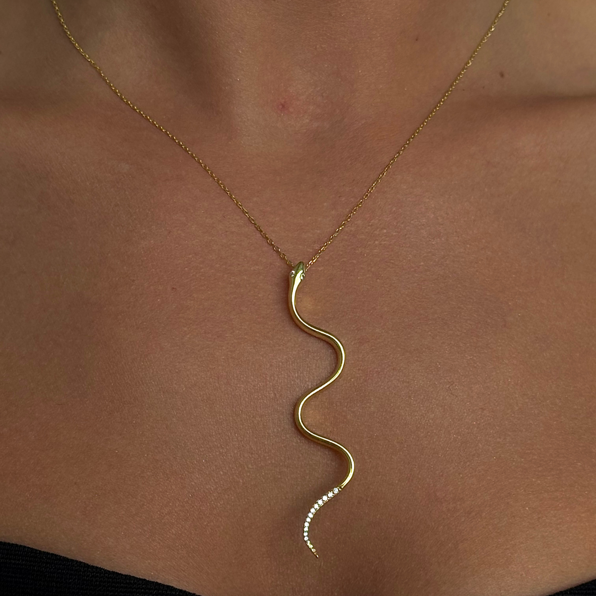 Taş Detaylı Yılan Kolye, 925 ayar gümüştür. Gold seçeneğinde altın kaplama yapılmaktadır. Zincir uzunluğu 40 cm + 5 cm uzatma zincirlidir.